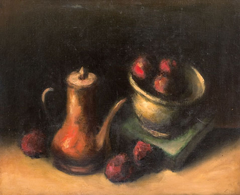 21. Natură statică cu ceainic și mere roșii