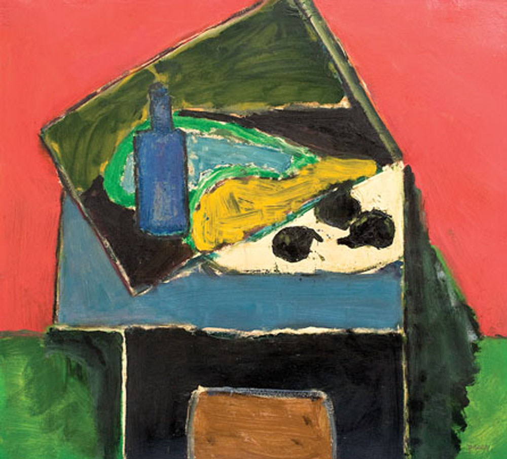 22. Natură statică cu sticlă albastră
