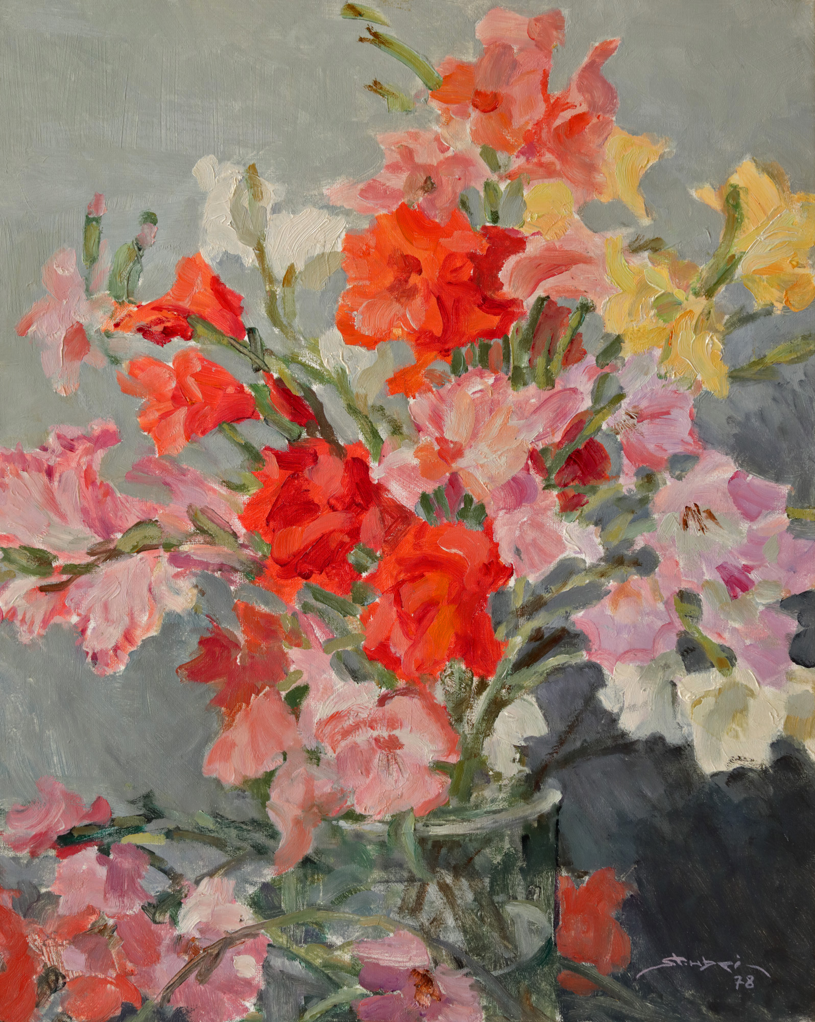 semnat și datat dreapta jos, cu roz, ”Știubei,(19)78”