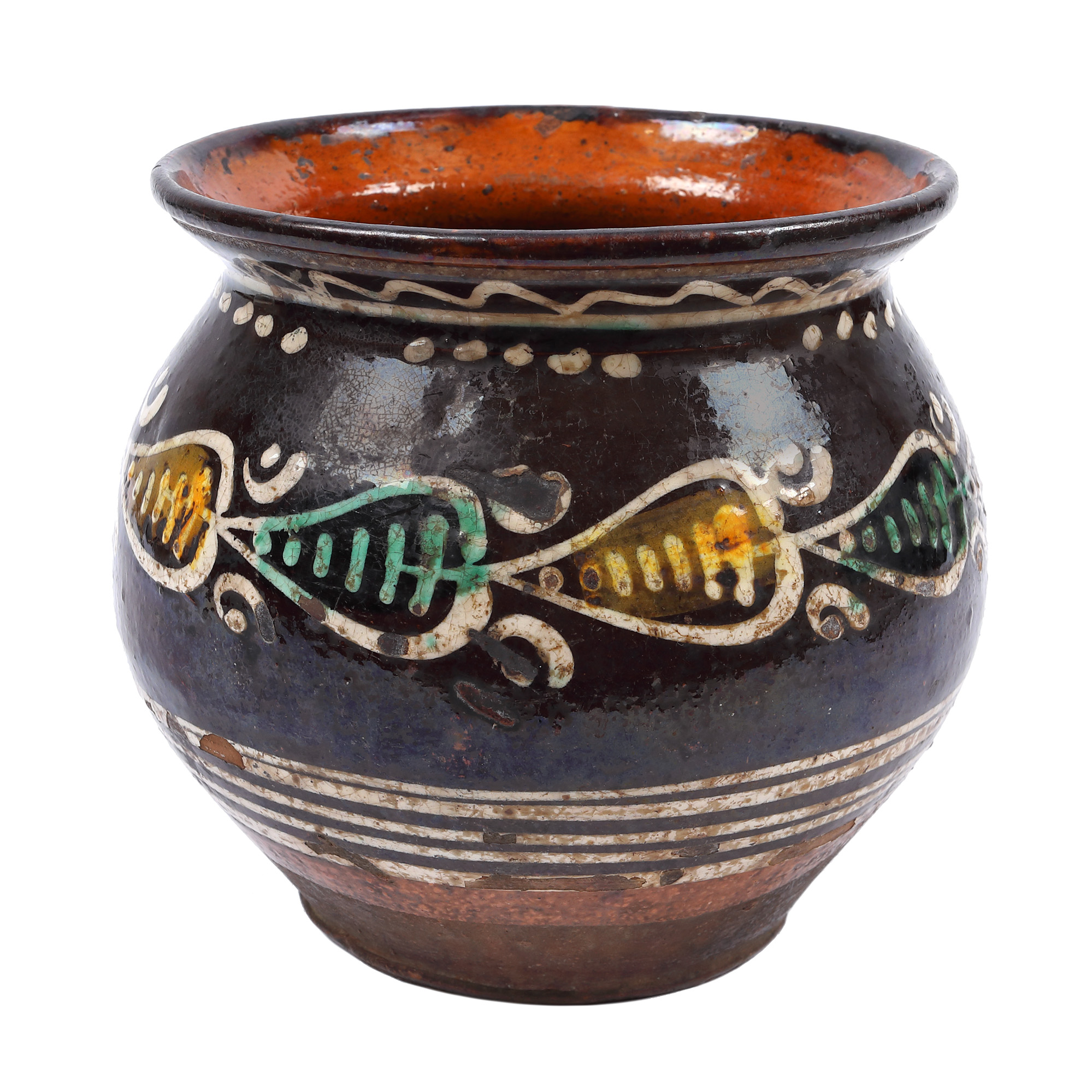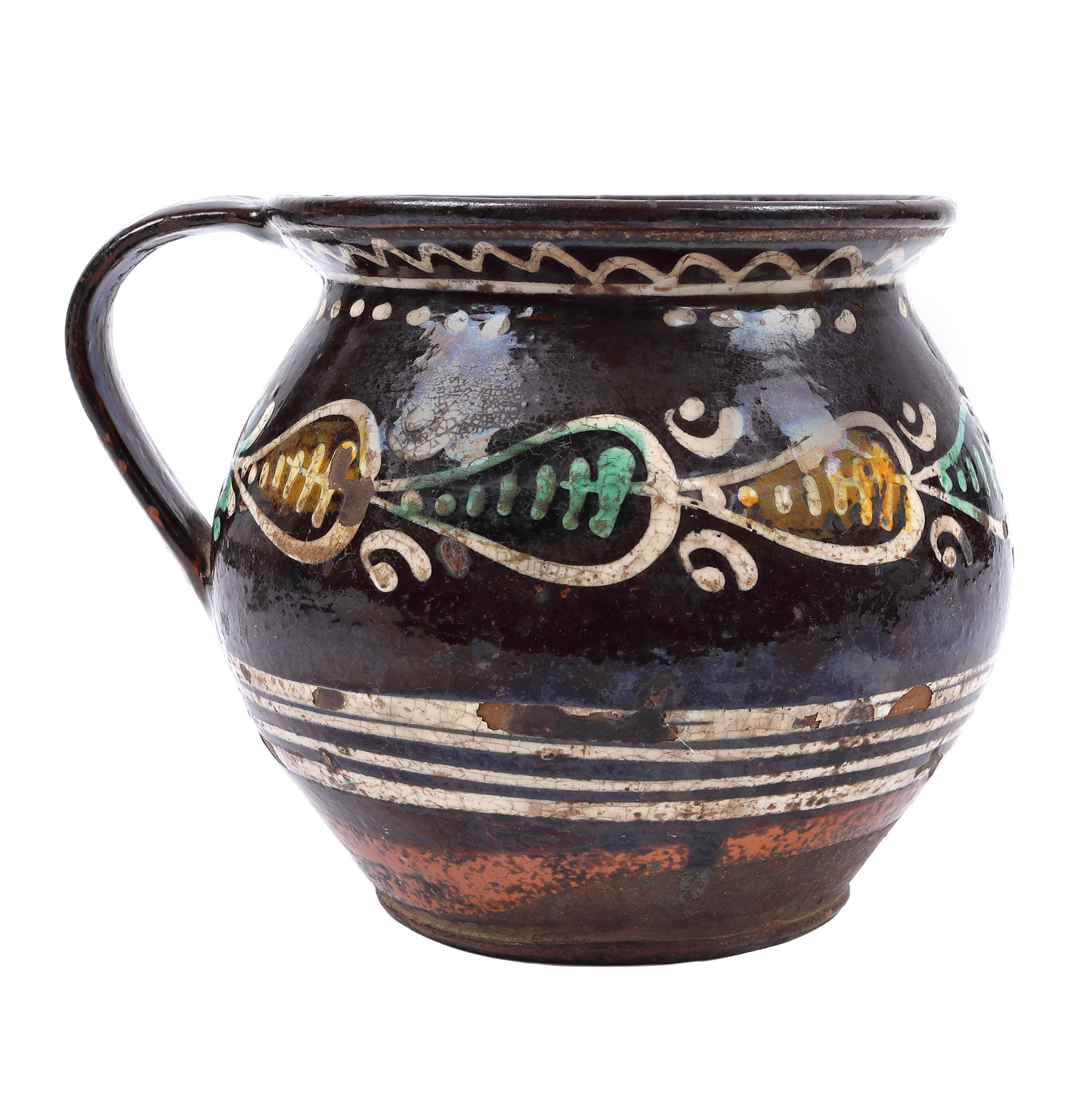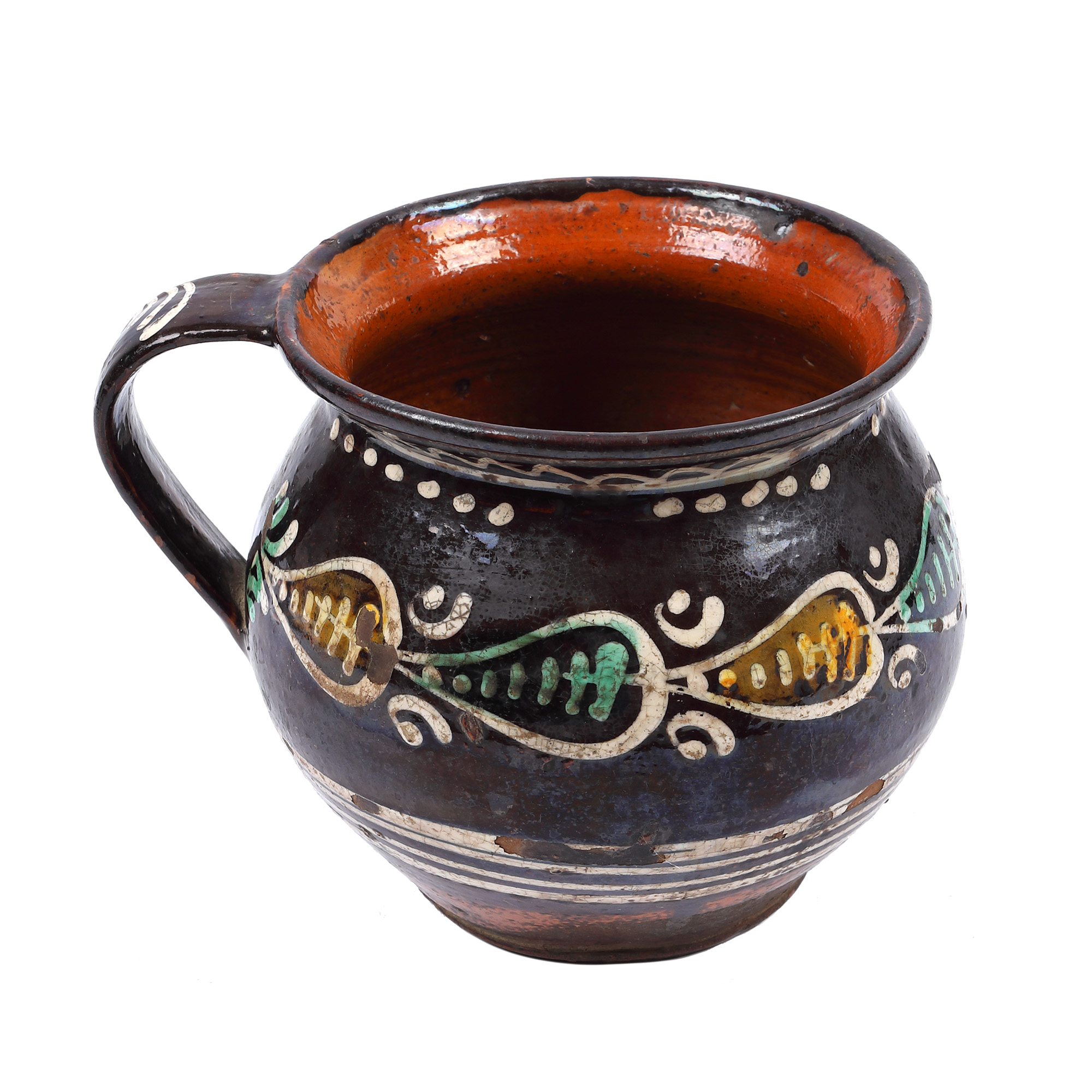 47. Cană pentru smântână, decorată cu motive florale, zona Vama-Oaș, începutul sec. XX, provine din colecția artistei Sanda Șaramat