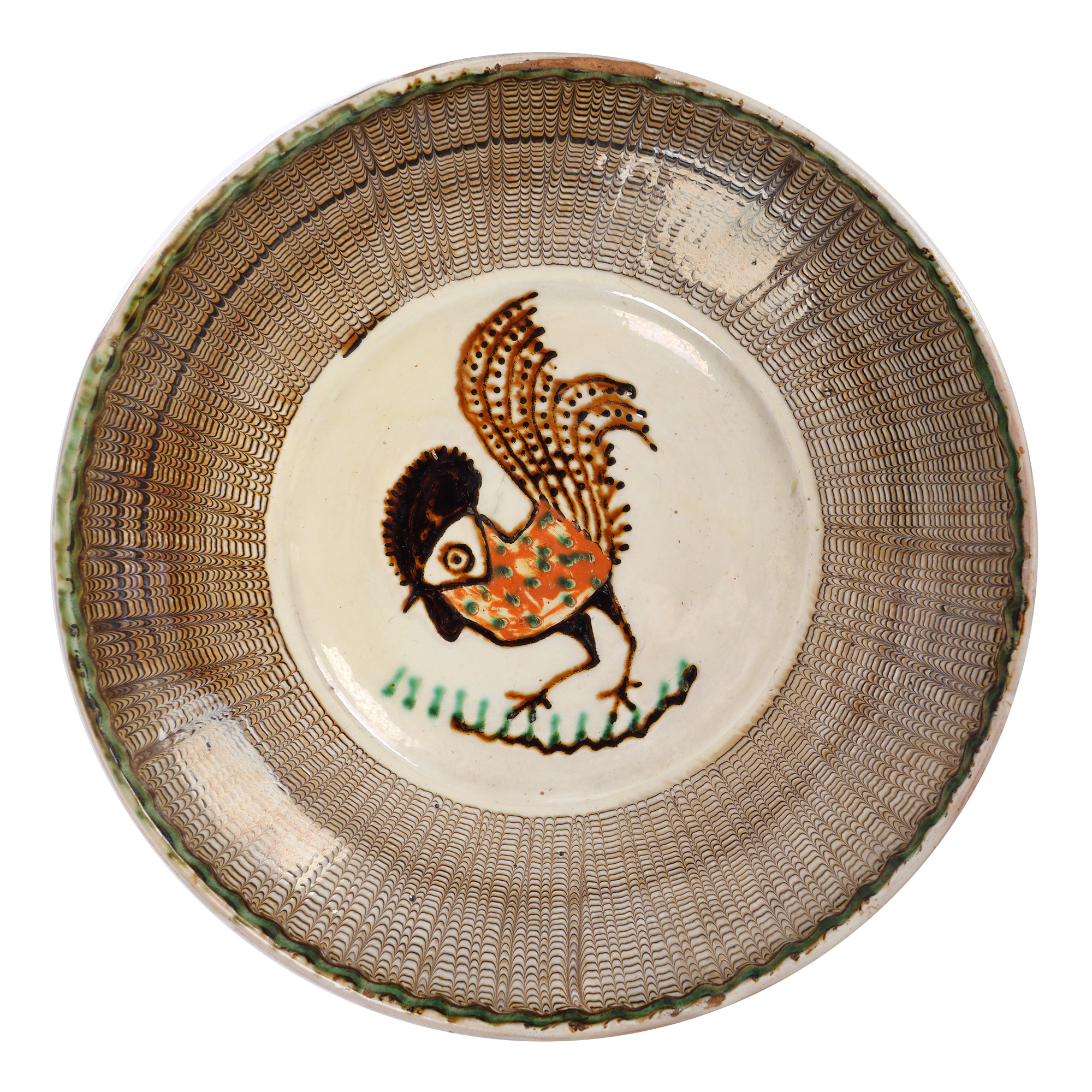 48. Farfurie Horezu, decorată cu motivul cocoșului, sec. XX, provine din colecția artistei Sanda Șaramat