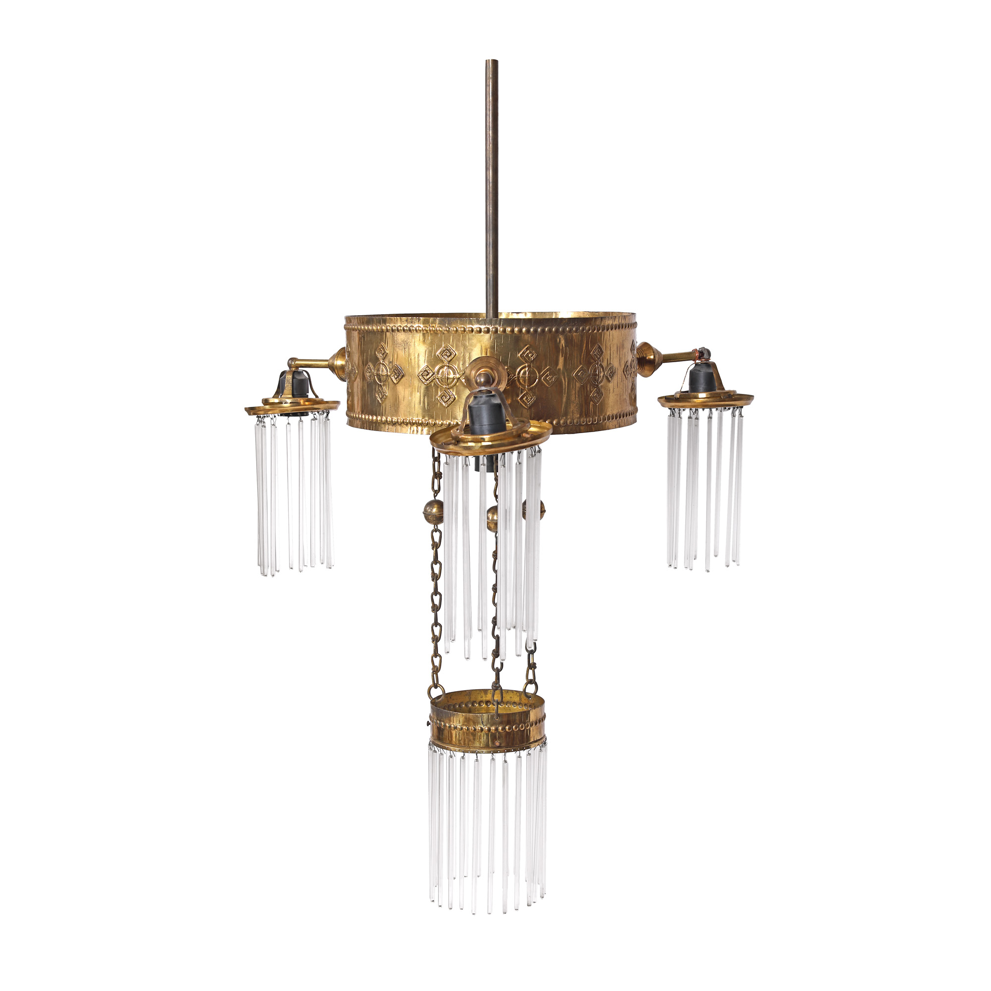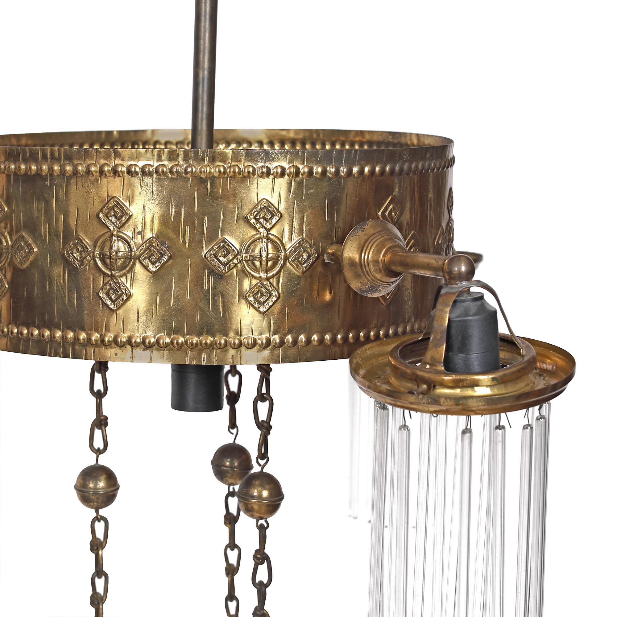60. Lampă de tavan în stil Art Deco, decorată cu motive geometrice, mijlocul sec. XX, provine din colecția artistei Sanda Șaramat