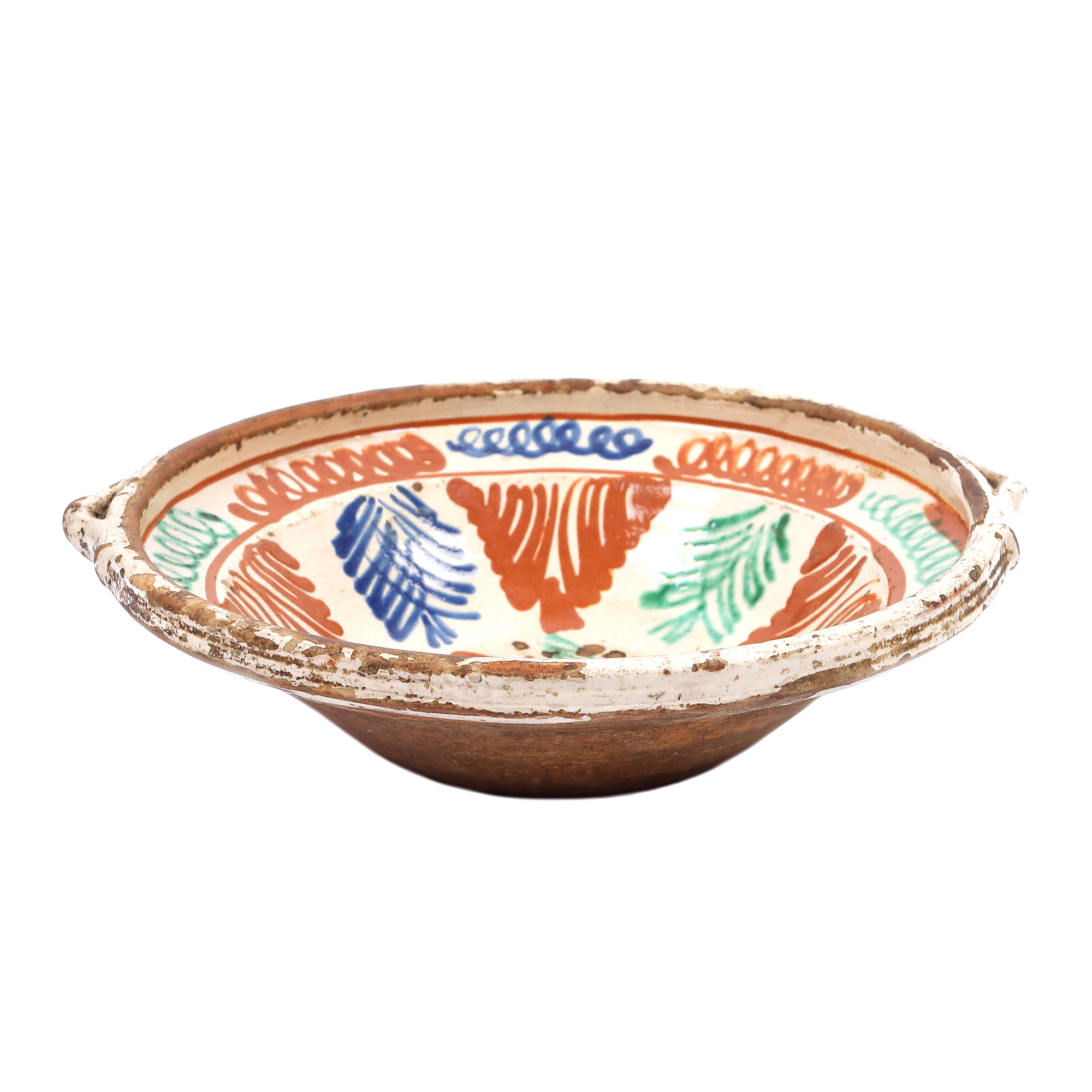 argilă comună, angobă, pigmenți minerali, smalț plombifer
