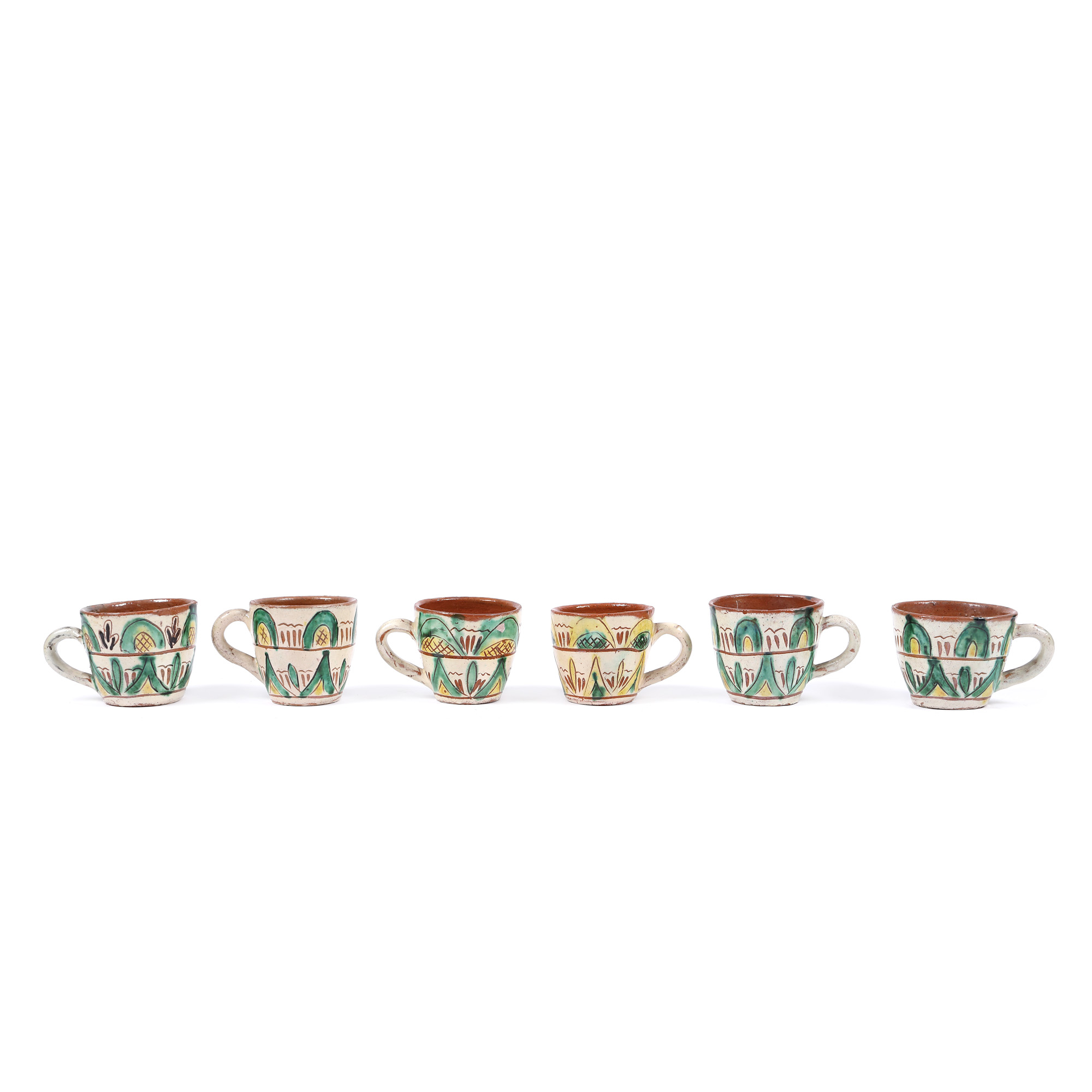 56. Lot format din șase cănuțe, tip kuty, semnate Colibaba, Rădăuți, mijlocul sec. XX, provine din colecția artistei Sanda Șaramat