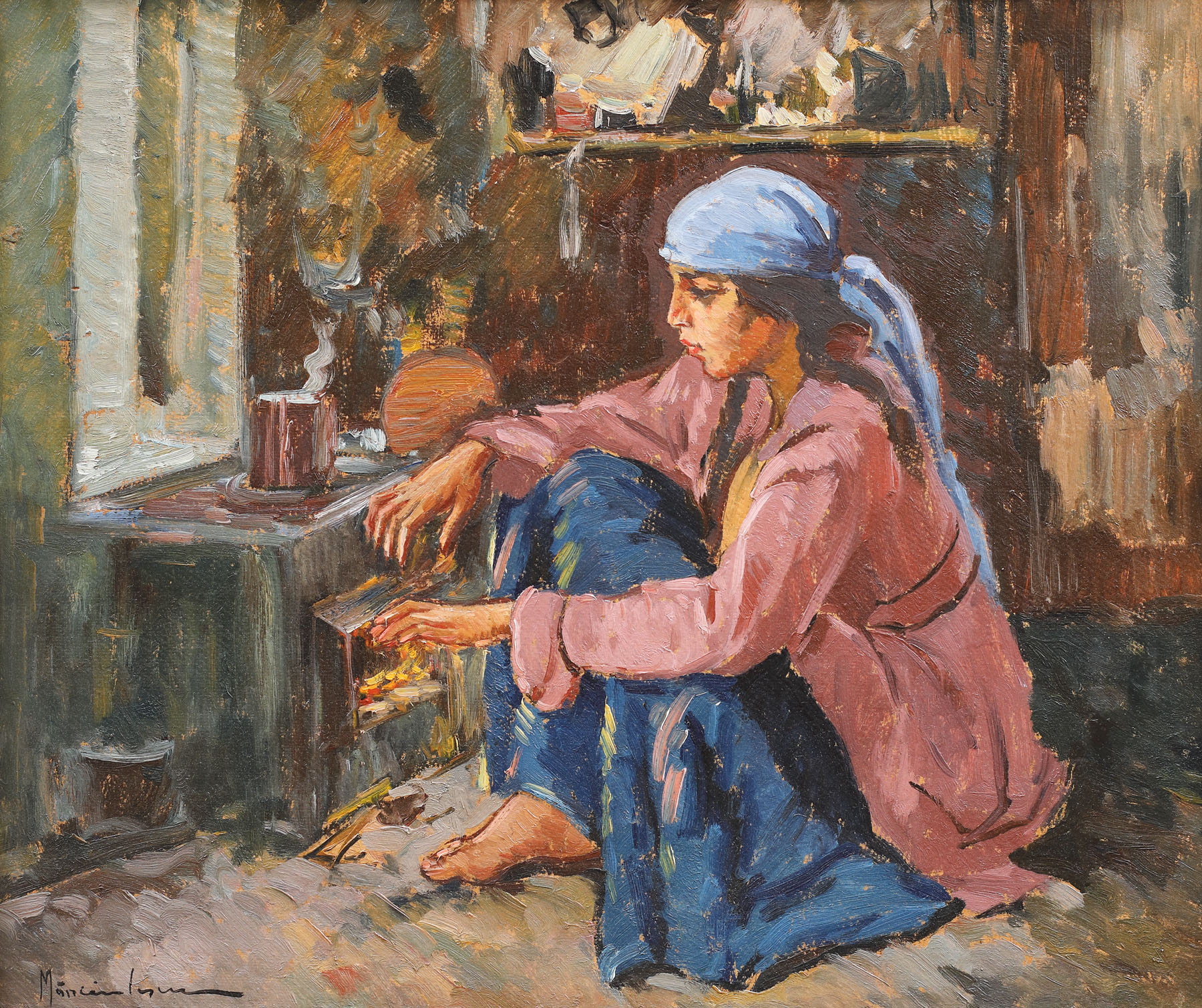 semnat stânga jos, cu negru, "Mănciulescu"