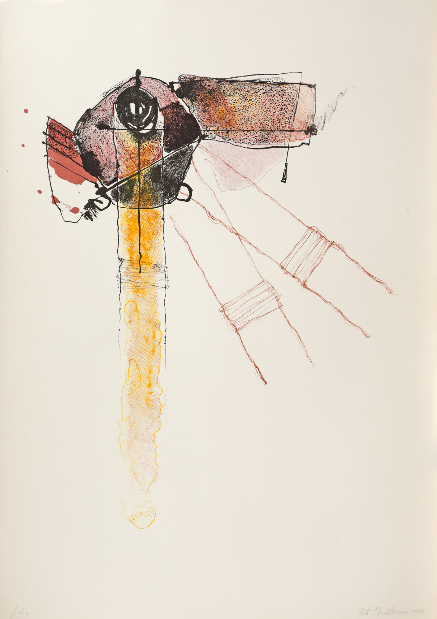 semnat dreapta jos, în creion, ”Geta Brătescu, 1977”; notat stânga jos, în creion, "p.d.a"