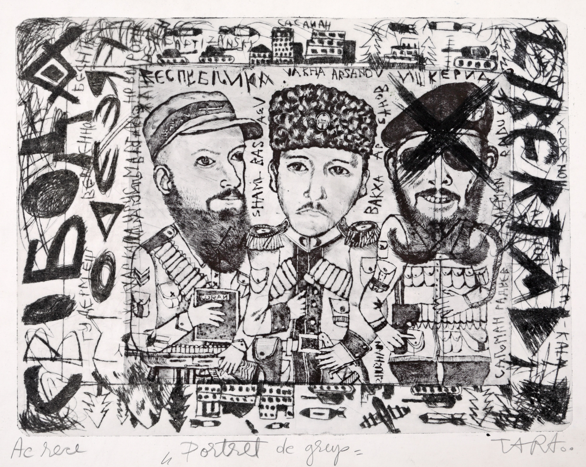 semnat dreapta jos, în creion, ”TARA”, intitulat central jos, în creion, ”Portret de grup”