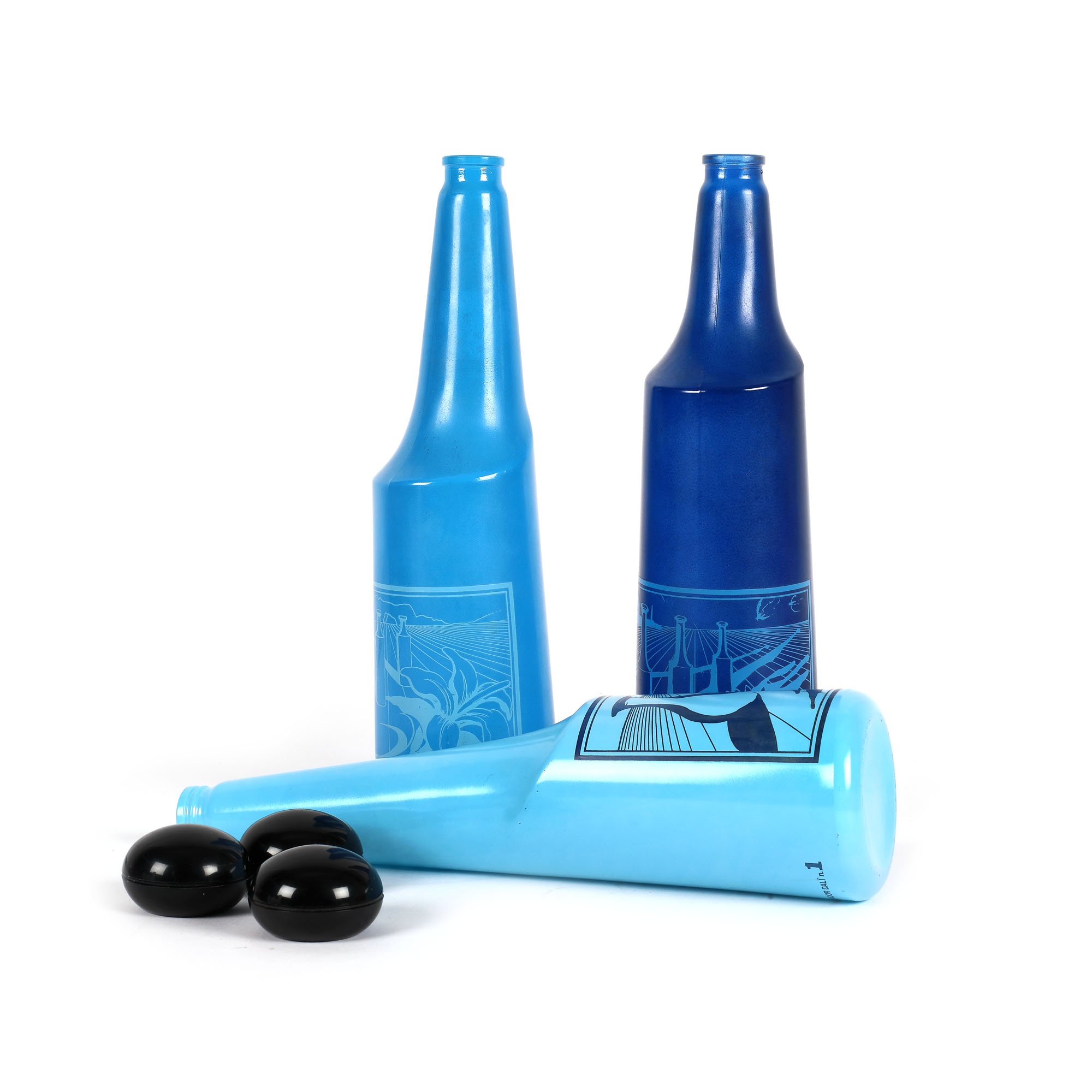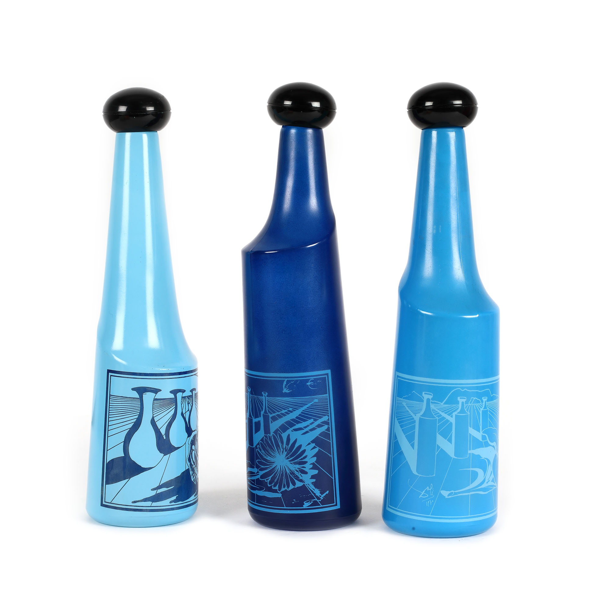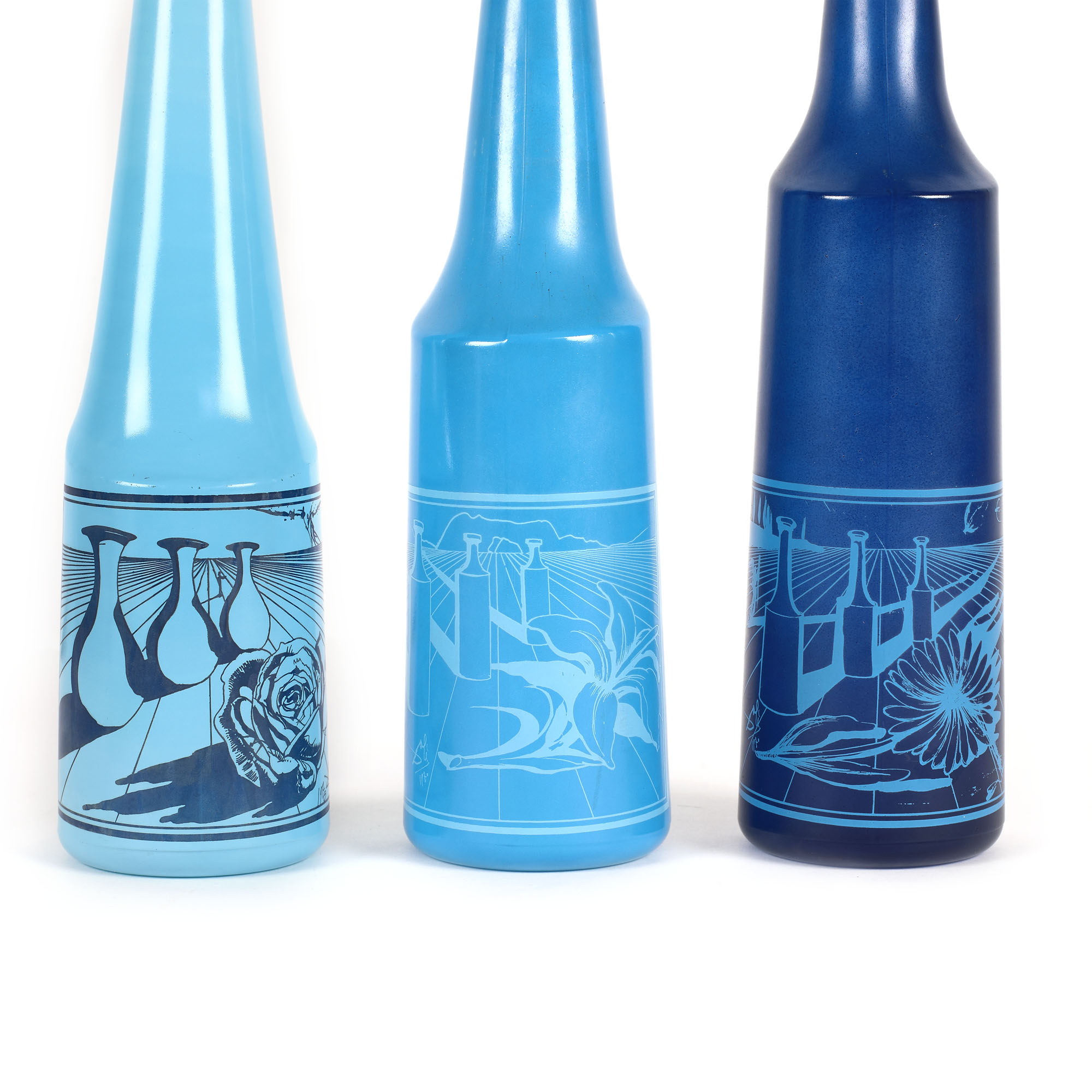 Trei sticle produse de compania de vinuri Rosso Antico, imprimate cu un design realizat de Salvador Dali în 1970. Sticlele ilustrează imagini suprarealiste, cu elemente iconografice specifice celebrului pictor. Sunt realizate din sticlă colorată, în manieră fantezistă.