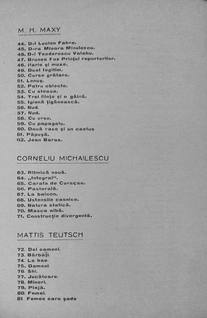 Numit în 1927 director artistic al al Academiei artelor decorative, M.H. Maxy va exprima o nestăvilită dorință de a impulsiona activitatea instituției și de a stabili un contact cât mai direct cu publicul, inițiind numeroase manifestări plastice. Rezultatul va fi deschiderea unor expoziții de scurtă durată, în cadrul cărora artistul va organiza mai multe expoziții, printre care și expozițiile „Grupului de artă nouă”, la care se alăturau artiștii din jurul revistei „Contimporanul”, precum și alți invitați. Primele manifestări ale Grupului de „Artă Nouă” aveau loc în anul 1927 (13 februarie – 15 martie, Sala Librăriei „Haseffer”, Str. Karagheorghevici), sub egida revistei avangardiste „Contimporanul”, având ca primi expozanți pe artiștii Marcel Iancu, Milița Petrașcu și Alexandru Brătășianu. Doi ani mai târziu, în 1929, grupul avea să se extindă, alături de primii trei expozanți alăturându-se acum și Max Heman Maxy, Corneliu Mihăilescu, Mattis Teutsch și Victor Brauner. Deschisă la 1 aprilie, noua expoziție se desfășura de această dată în sălile Academiei de artă decorativă (Str. Câmpineanu 17), instituție condusă de Maxy. Ultima manifestare expozițională a grupului avea loc între 25 ianuarie – 8 februarie 1932, la Sala Ileana (Cartea Românească), expoziție ce aduna laolaltă, sub aceleași țeluri, artiști ca: Henry Daniel, Merica Râmniceanu, Michaela Eleutheriade, Lucia Demetriade-Bălăcescu, Margareta Sterian, Olga Greceanu, Nina Arbore, Claudia Millian, Lucreția Popp sau Tania Șeptelici. Deși dizolvat în 1932, datorită ostilității publicului și a criticii, grupul avea să își afle continuitatea un an mai târziu, pe aceleași poziții artistice și sub aceleași colaborări, sub formula eclectică „Criterion”. Printre subiectele picturii sale din această perioadă se regăsesc și cele inspirate din viața claselor de jos, ilustrate de artist în opere precum: „Cu ursu”, „Curse”, „Cu papagalul”, „Țărănci spălându-se” ș.a., pe care le compune cubist, fără a renunța la culoare - care primește o nouă valoare. (G.M.)