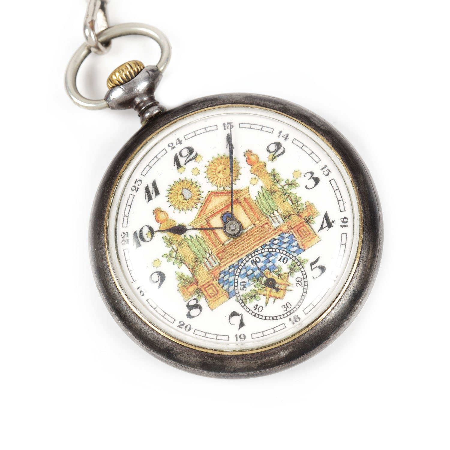 3. Ceas Acier Garanti, de buzunar, decorat cu însemne masonice