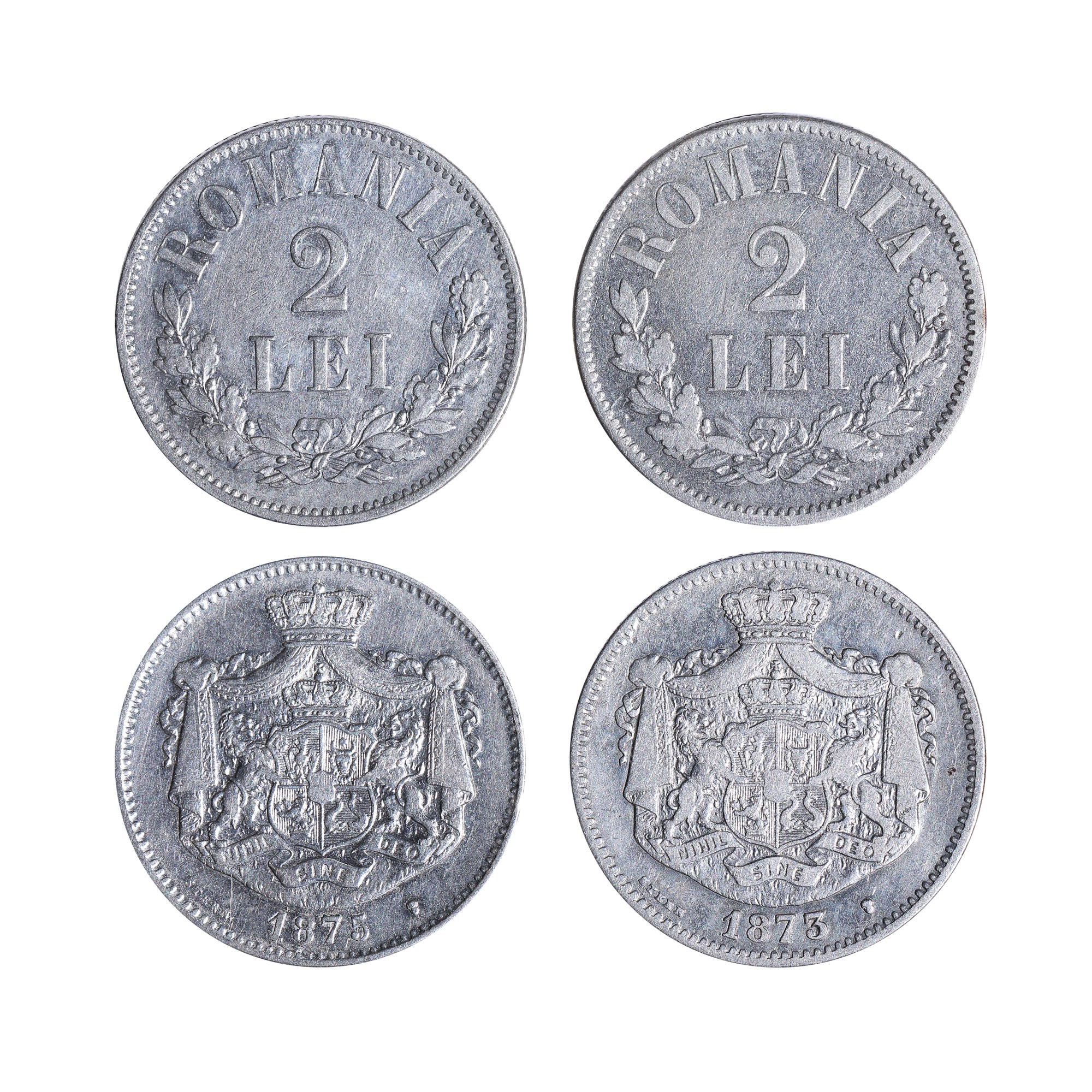 42. Lot format din 2 monede din argint, 2 Lei 1873, 1875