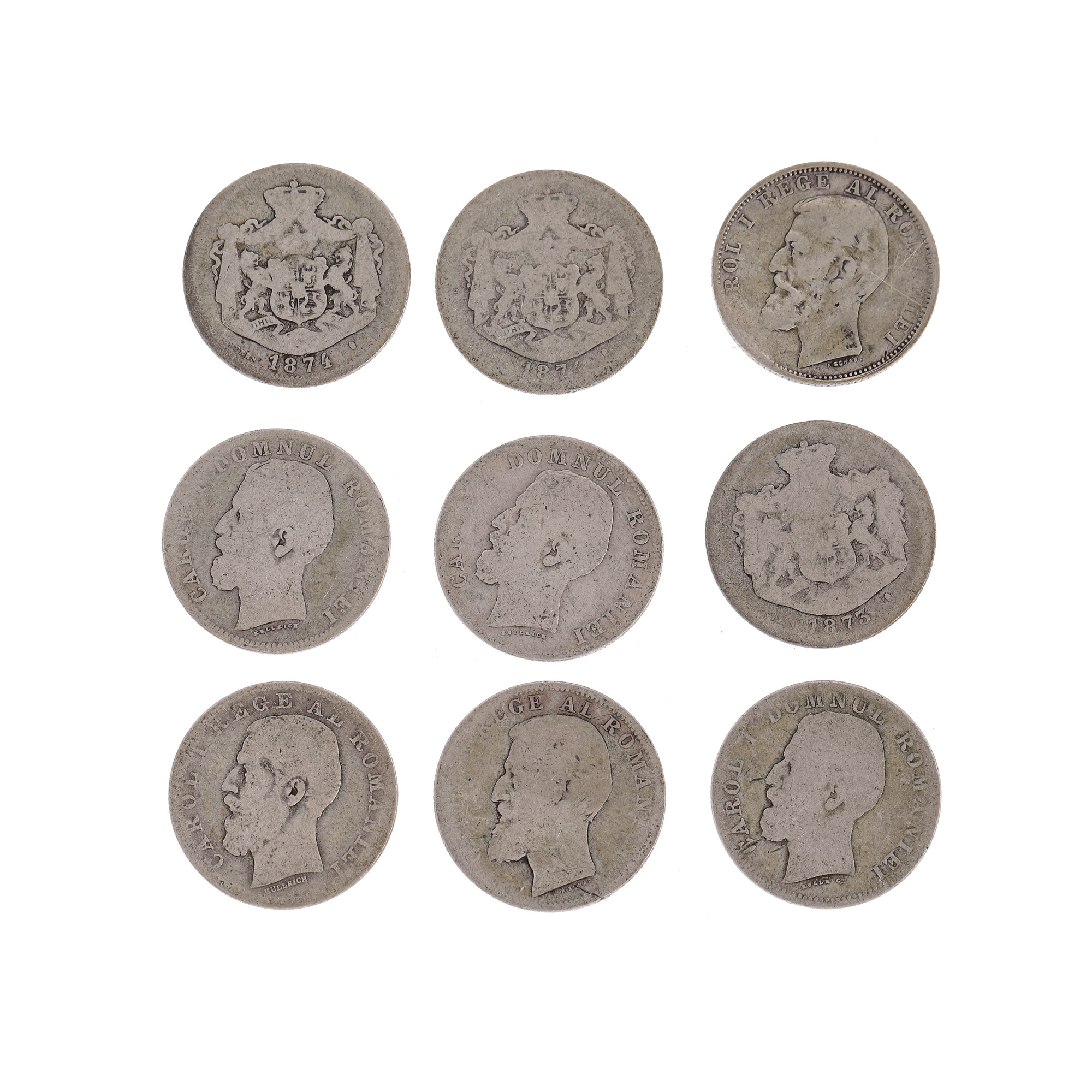 34. Lot format din nouă monede de 1 Leu, perioada 1873-1894, argint
