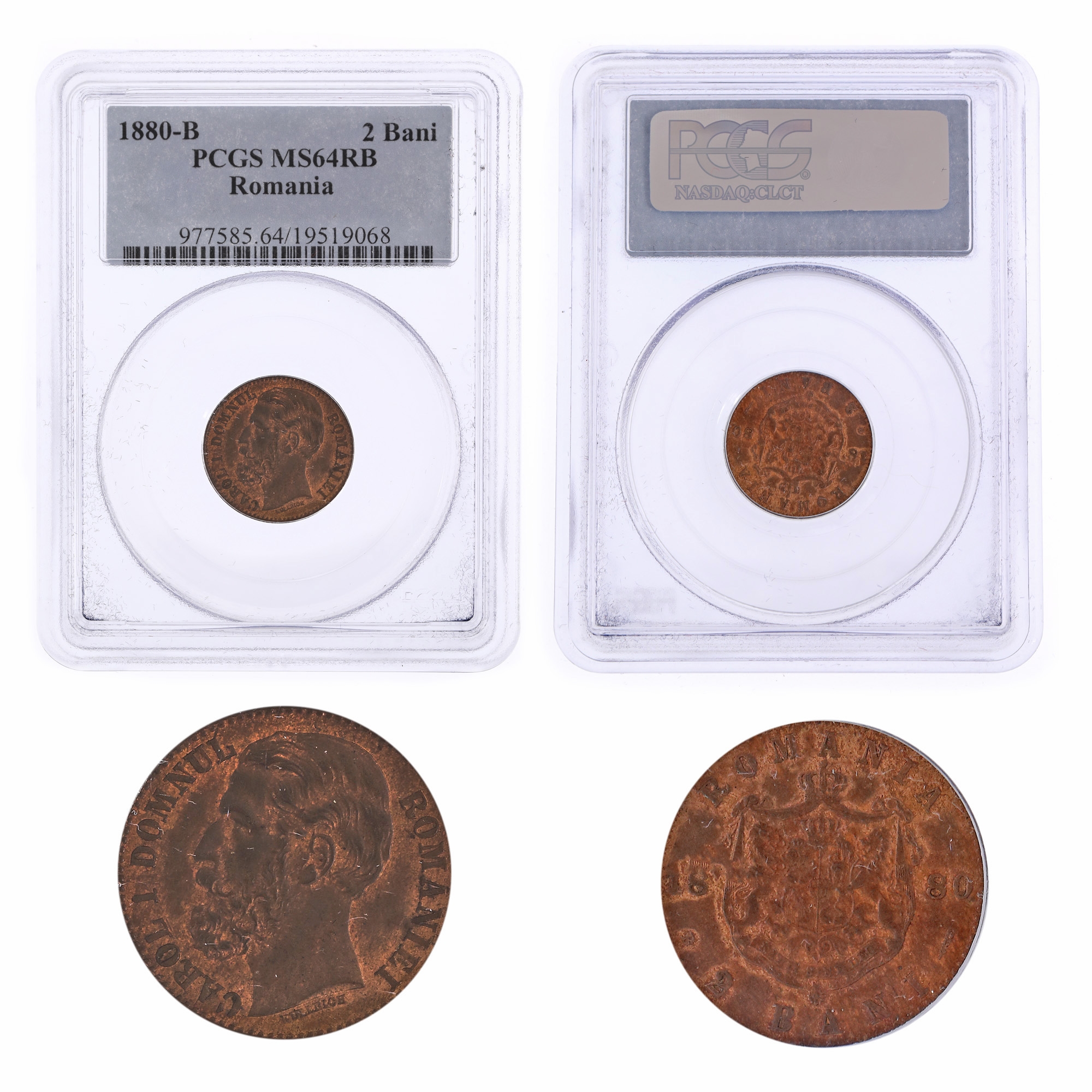 52. Moneda 2 Bani 1880B, MS 64 RB, cu multiple erori