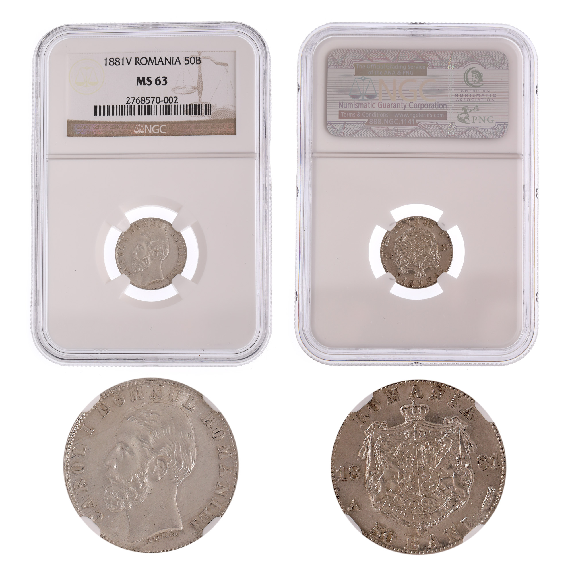 58. Moneda 50 Bani 1881, MS 63, Viena, argint