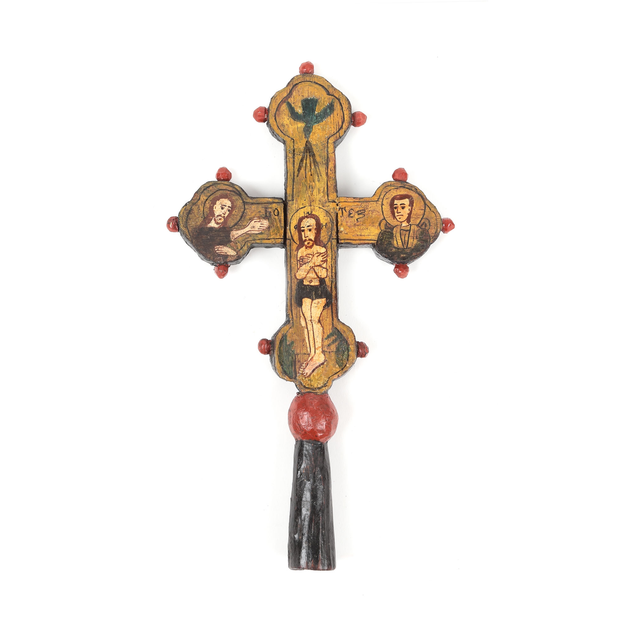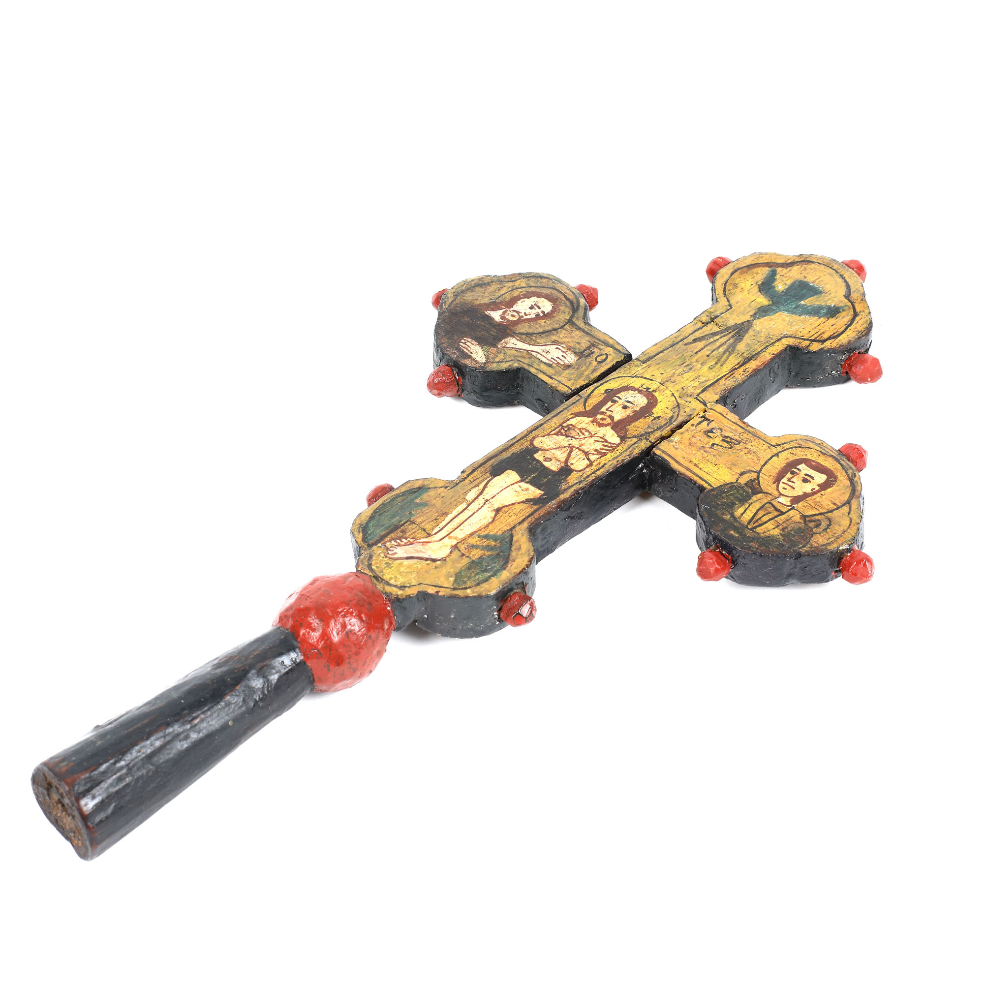 10. Cruce de mână, decorată cu scenele ”Răstignirii” și ”Botezului”, atelierul familiei Poienaru din Laz, 1898