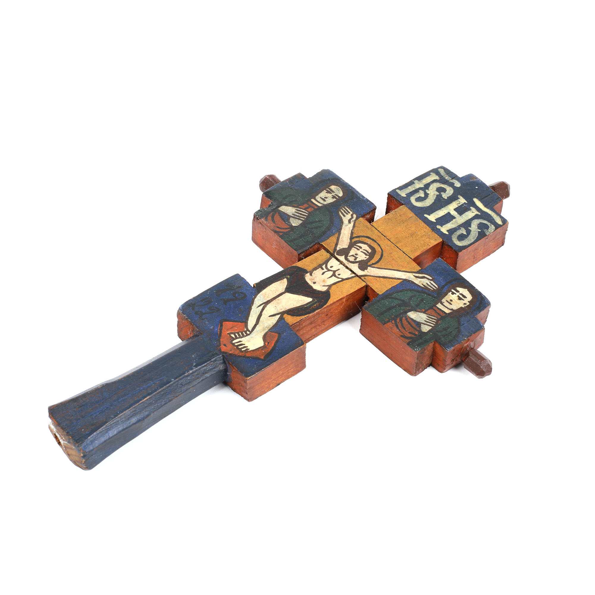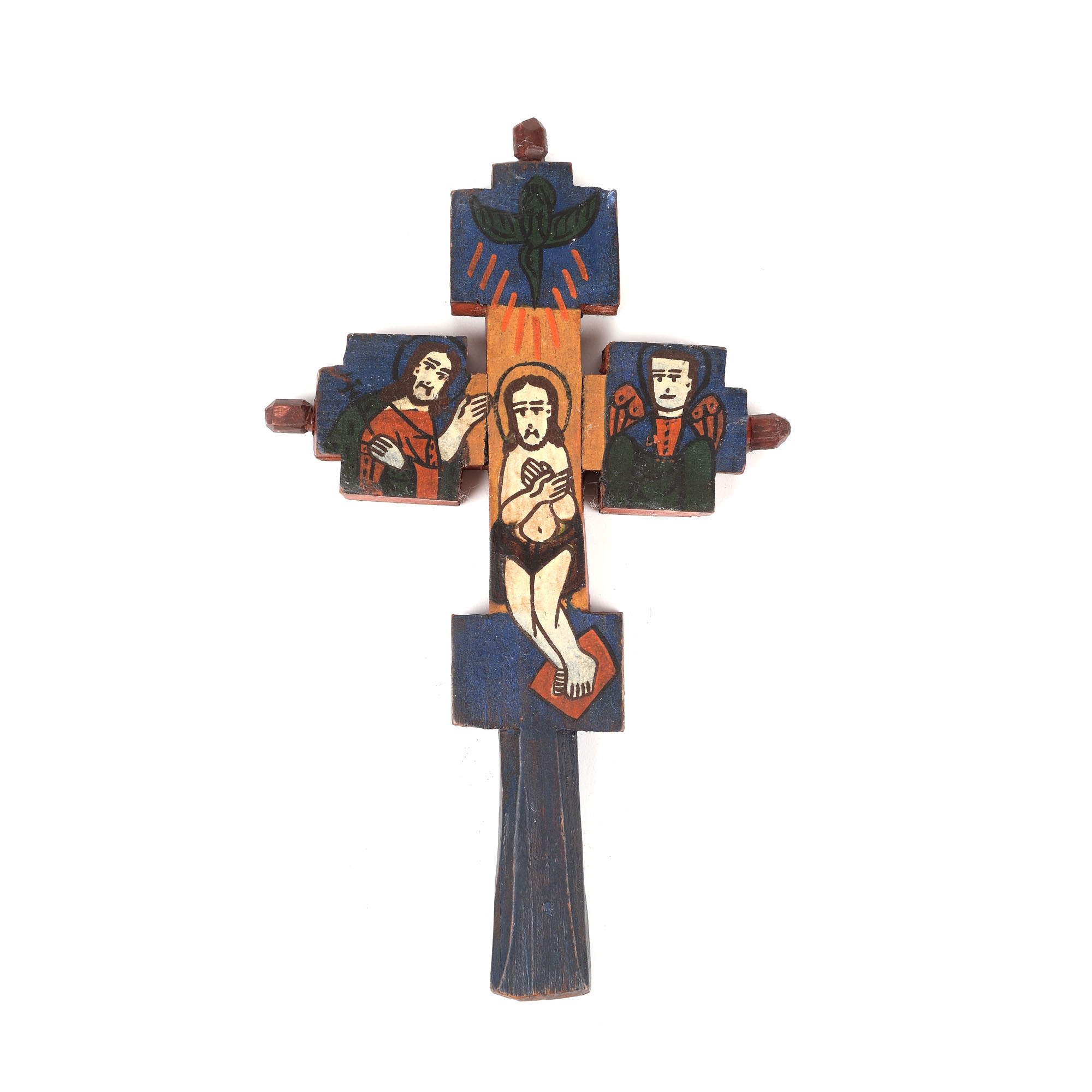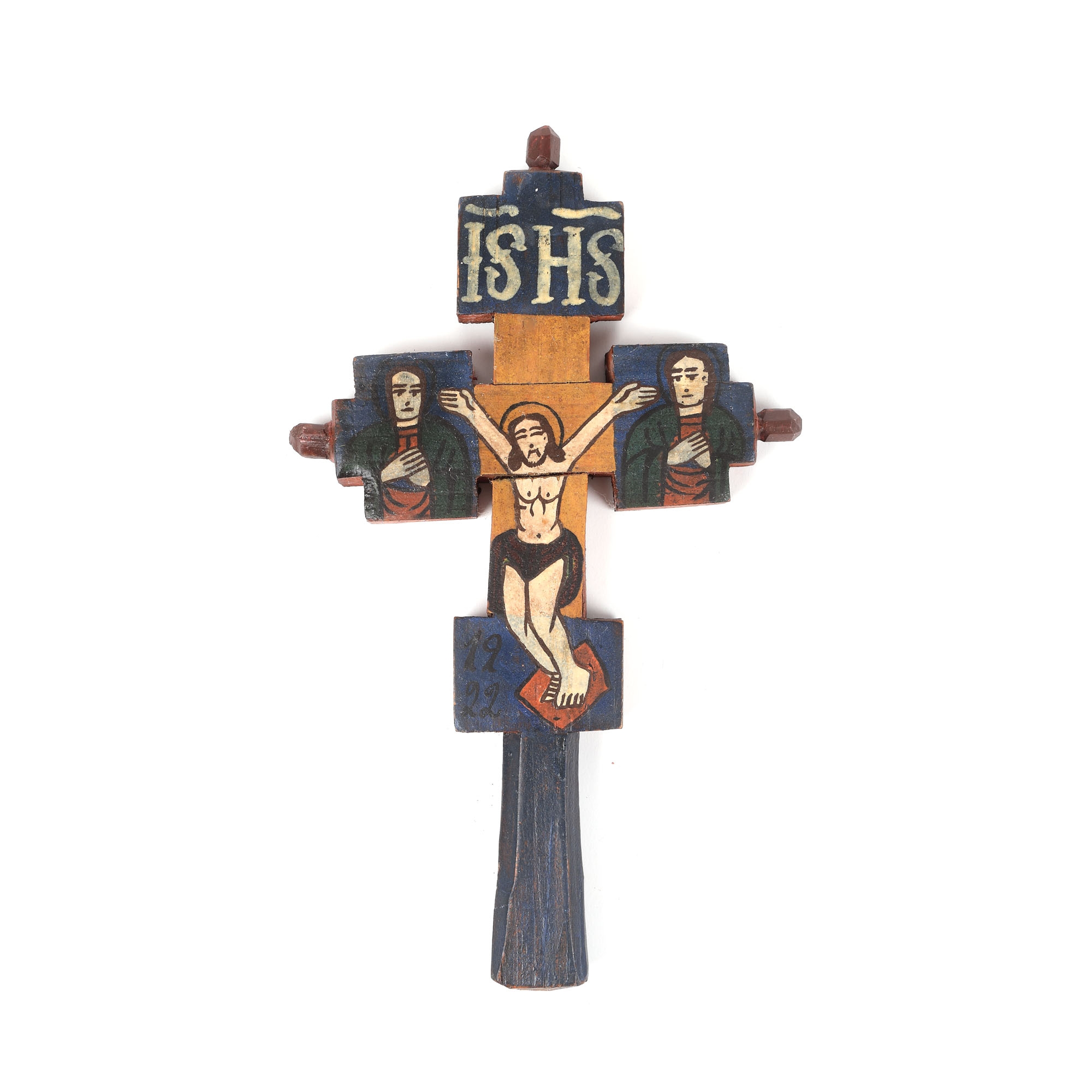 47. Cruce de mână, decorată cu scenele ”Răstignirii” și ”Botezului”, atelierul familiei Poienaru din Laz, 1922