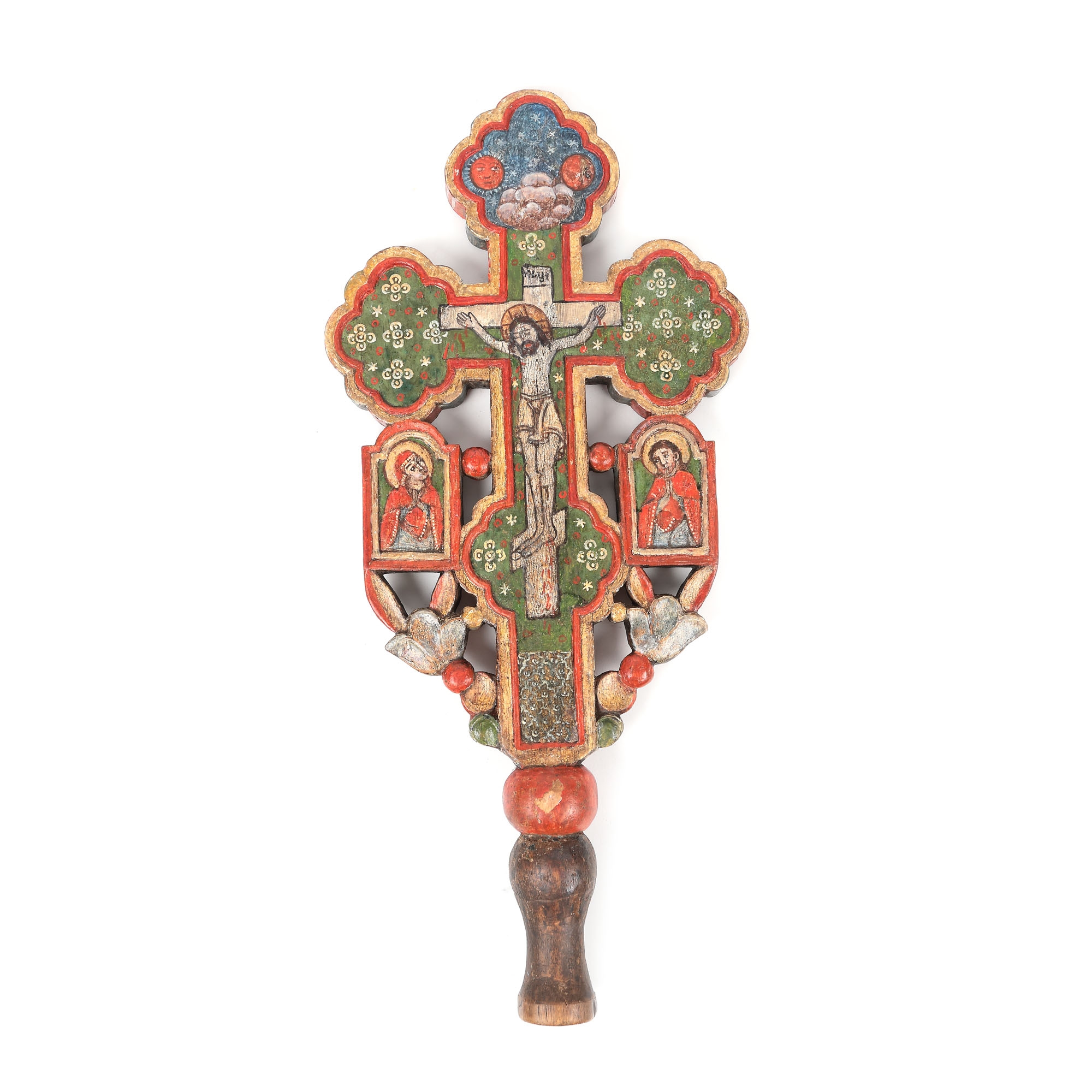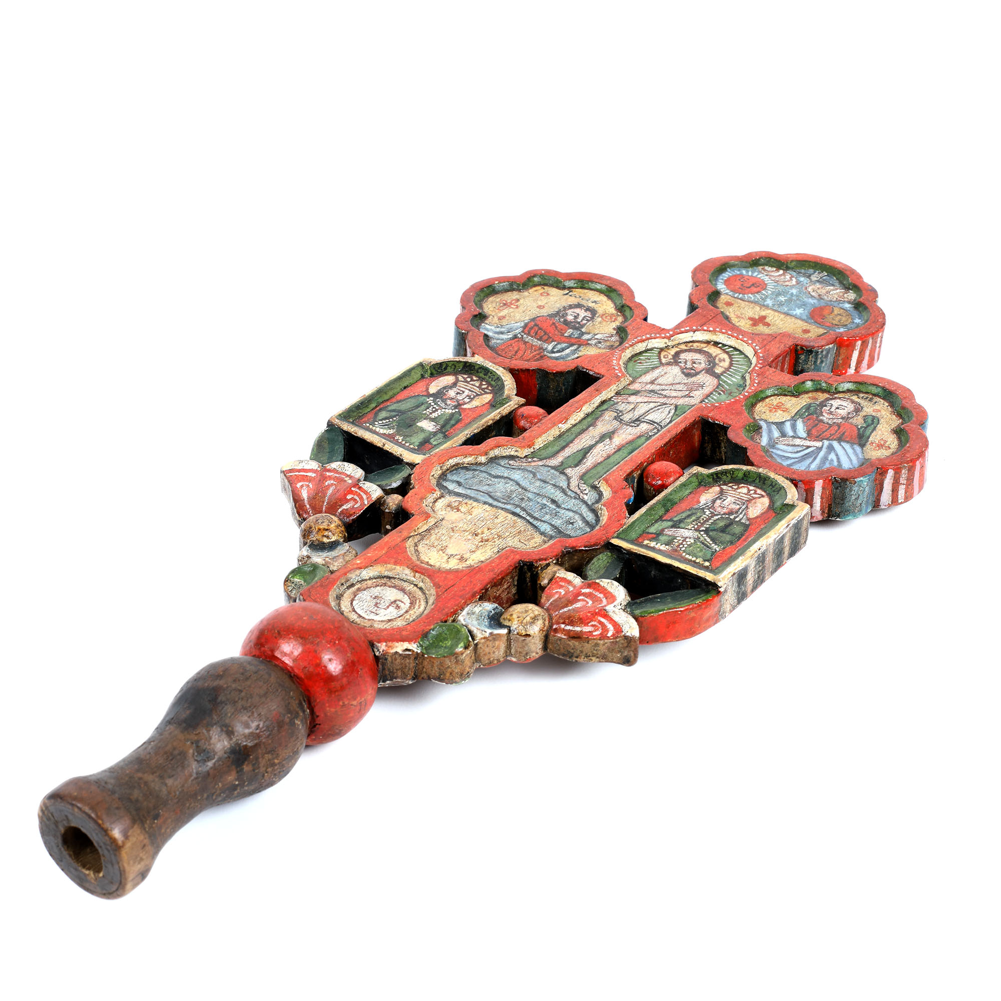 15. Cruce de mână, pictată cu scenele ”Răstignirii” și ”Botezului”, școală moldovenească, sfârșitul sec. XVIII - începutul sec. XIX, piesă rară, de colecție