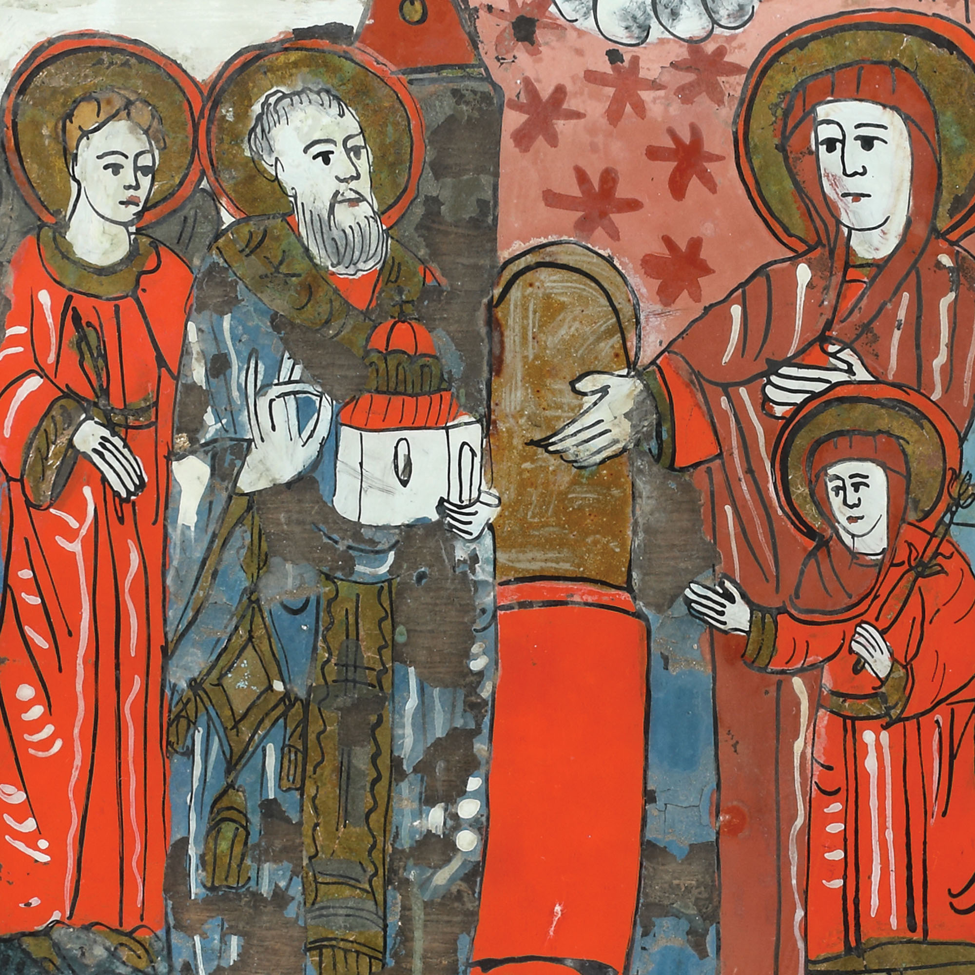 18. Icoană pe glajă, ”Intrarea în Biserica a Maicii Domnului", atelier din Făgăraş‐Rupea, cca. 1830‐1840, de colecție