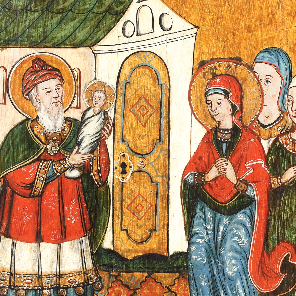 28. Icoană pe lemn, ”Prezentarea la Templu a Domnului”, școală transilvăneană, a doua jumătate a sec. XVIII