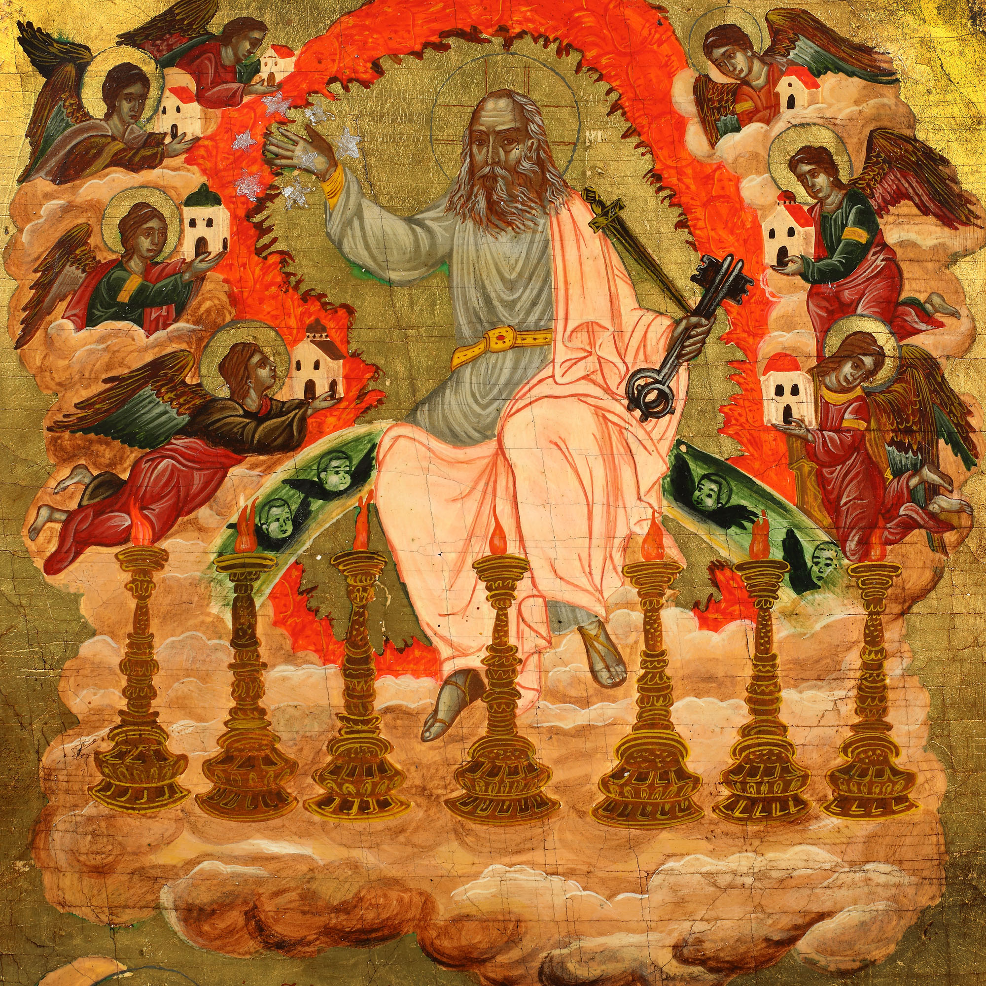36. Icoană pe lemn, ”Visul Sfântului Ioan Teologoul”, zugrav Ioan, jumătatea sec. XVIII, piesă rară, de colecție