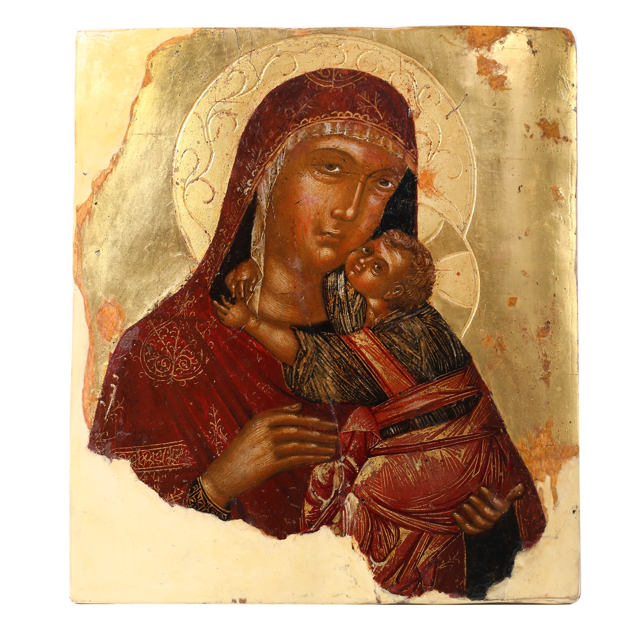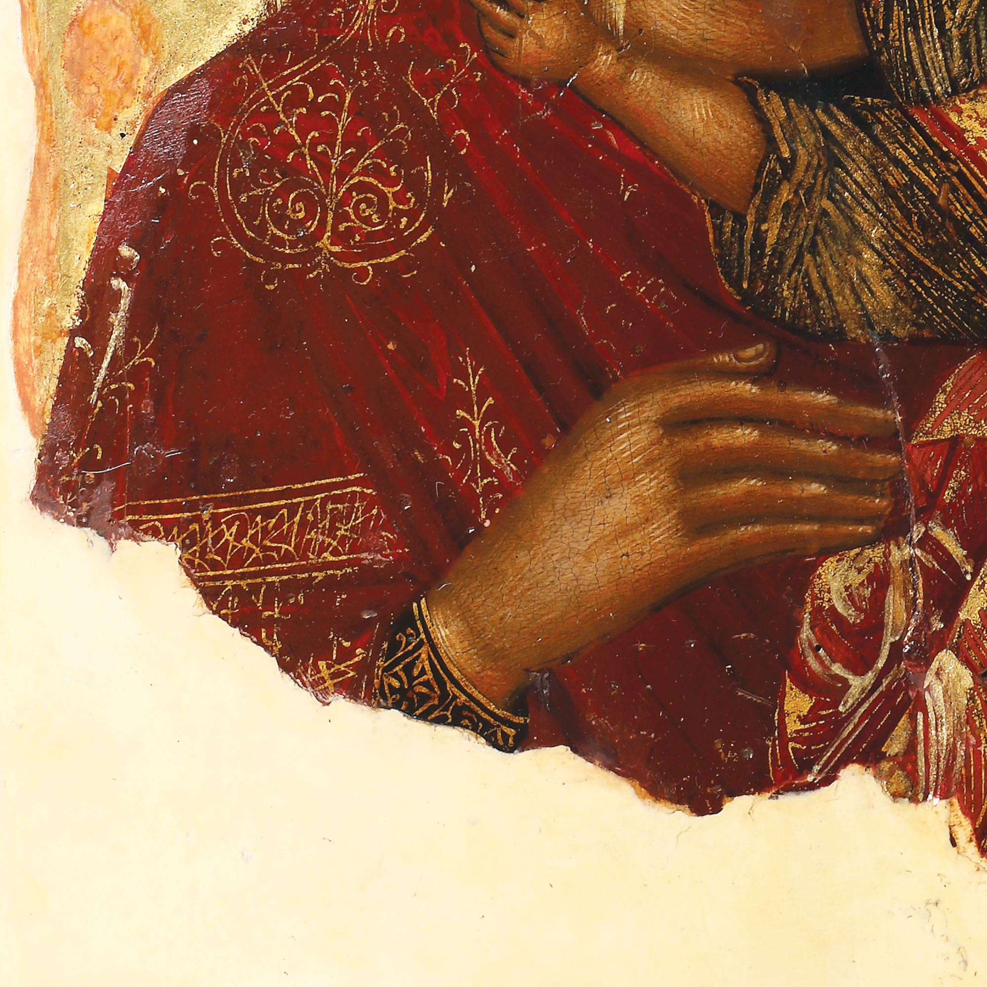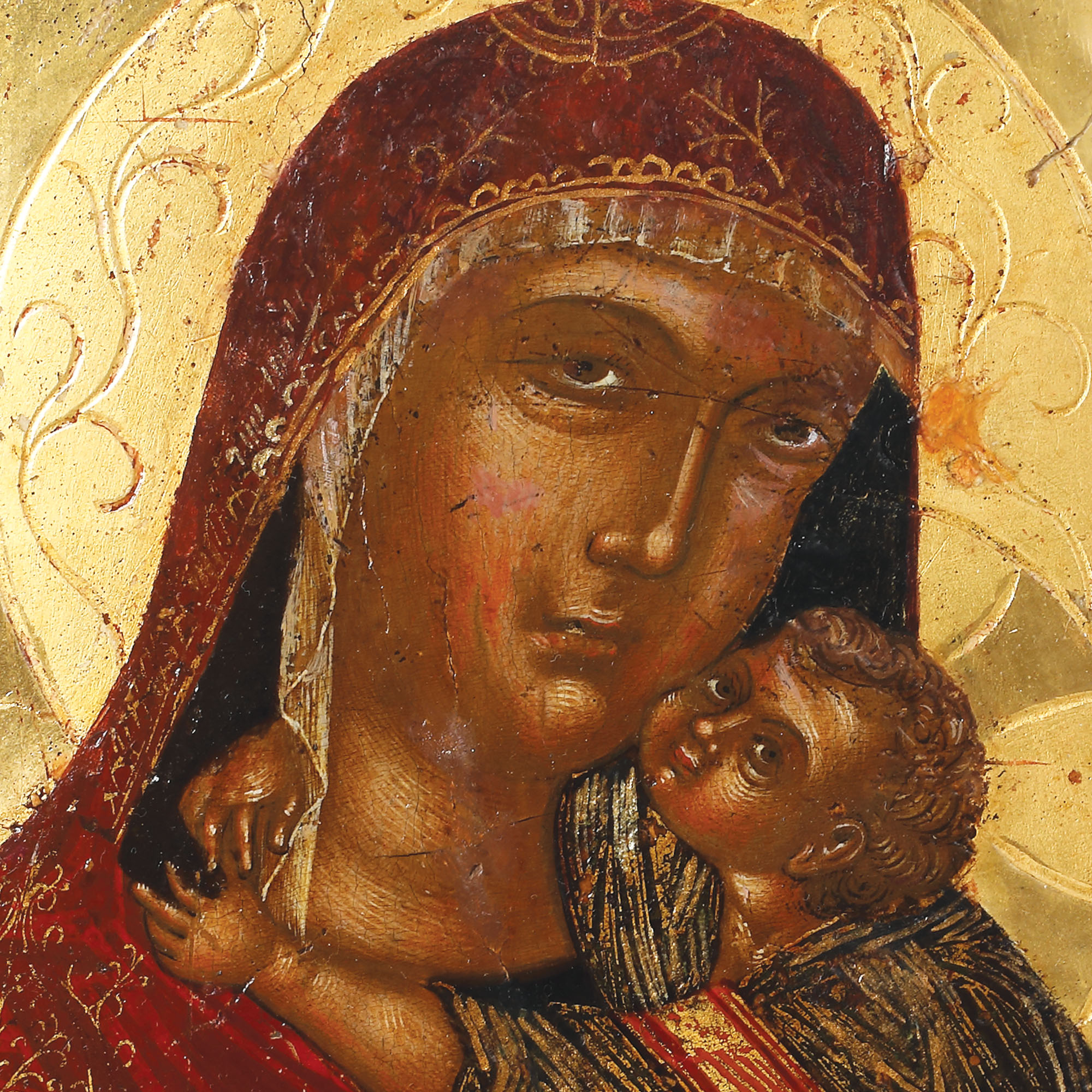 38C. Icoană veneto-cretană pe lemn, ”Maica Domnului cu Pruncul (Glikofilusa)”, sec. XVI, piesă rară