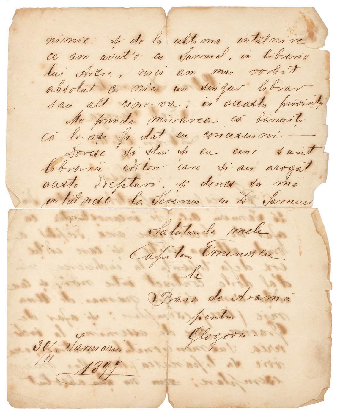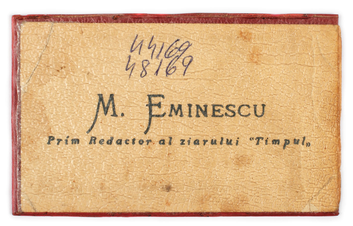 185. Cartea de vizită a lui Mihai Eminescu, prim redactor al ziarului "Timpul"