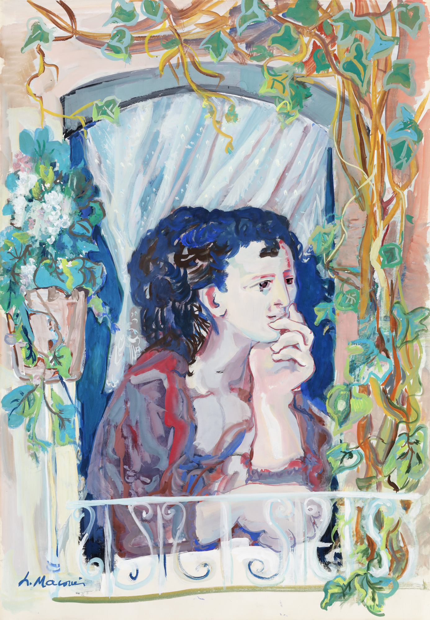 semnat stânga jos, cu albastru, ”L. Macovei”