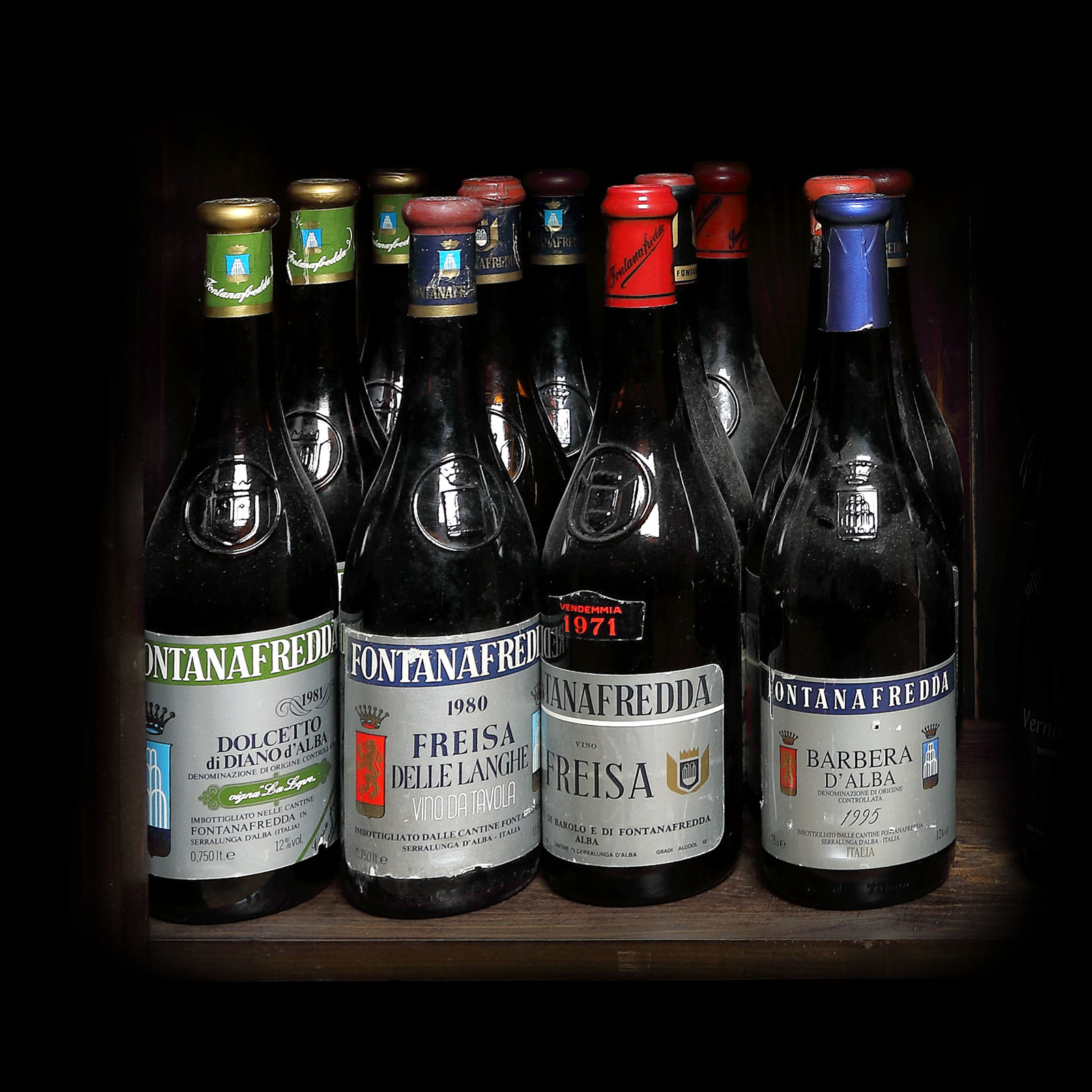 242. Colecție de vinuri Fontanafredda, 1962-1995, 12 st x 75 cl
