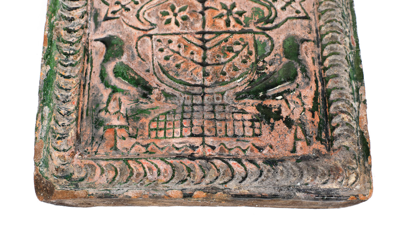 21. Cahlă ilustrând motivul copacului vieții, purtând monograma ”T.R.”, sec. XVIII, provine din colecţia Lucrezia și Ion Pacea