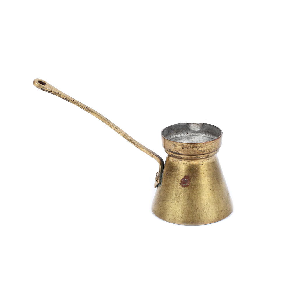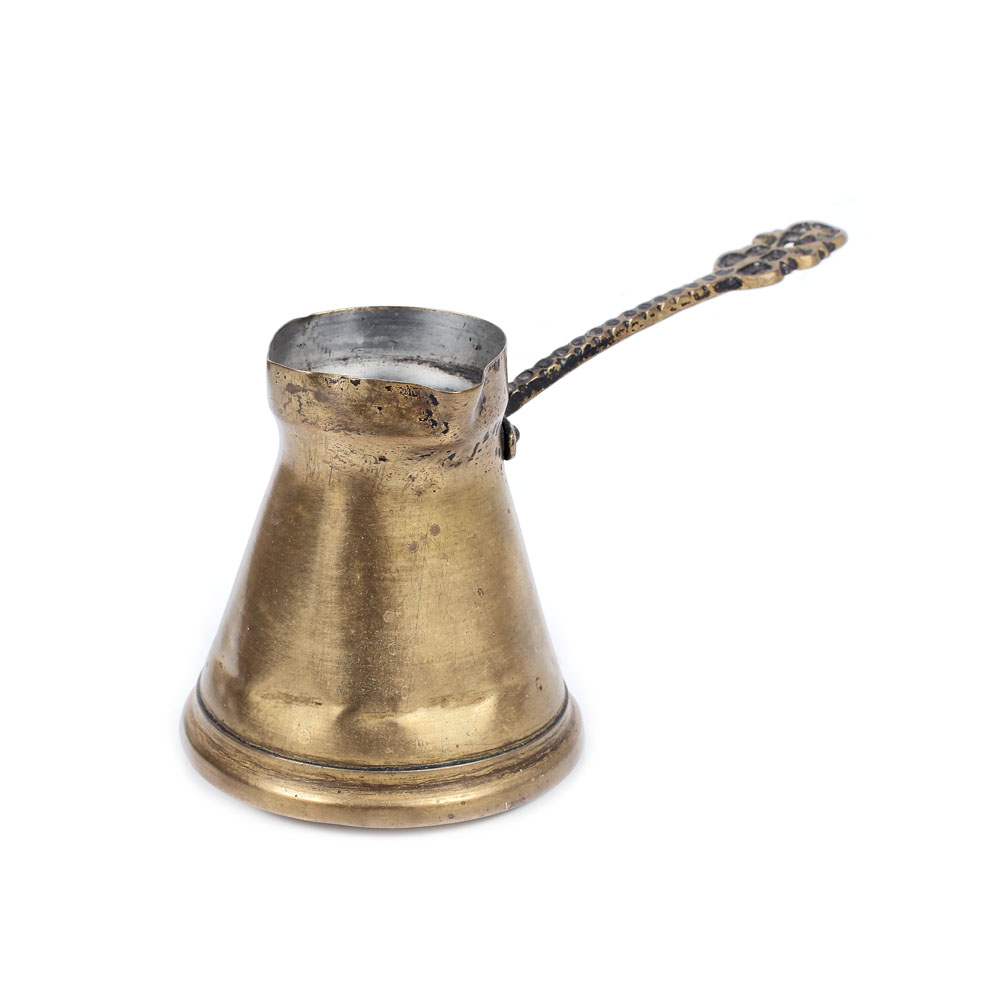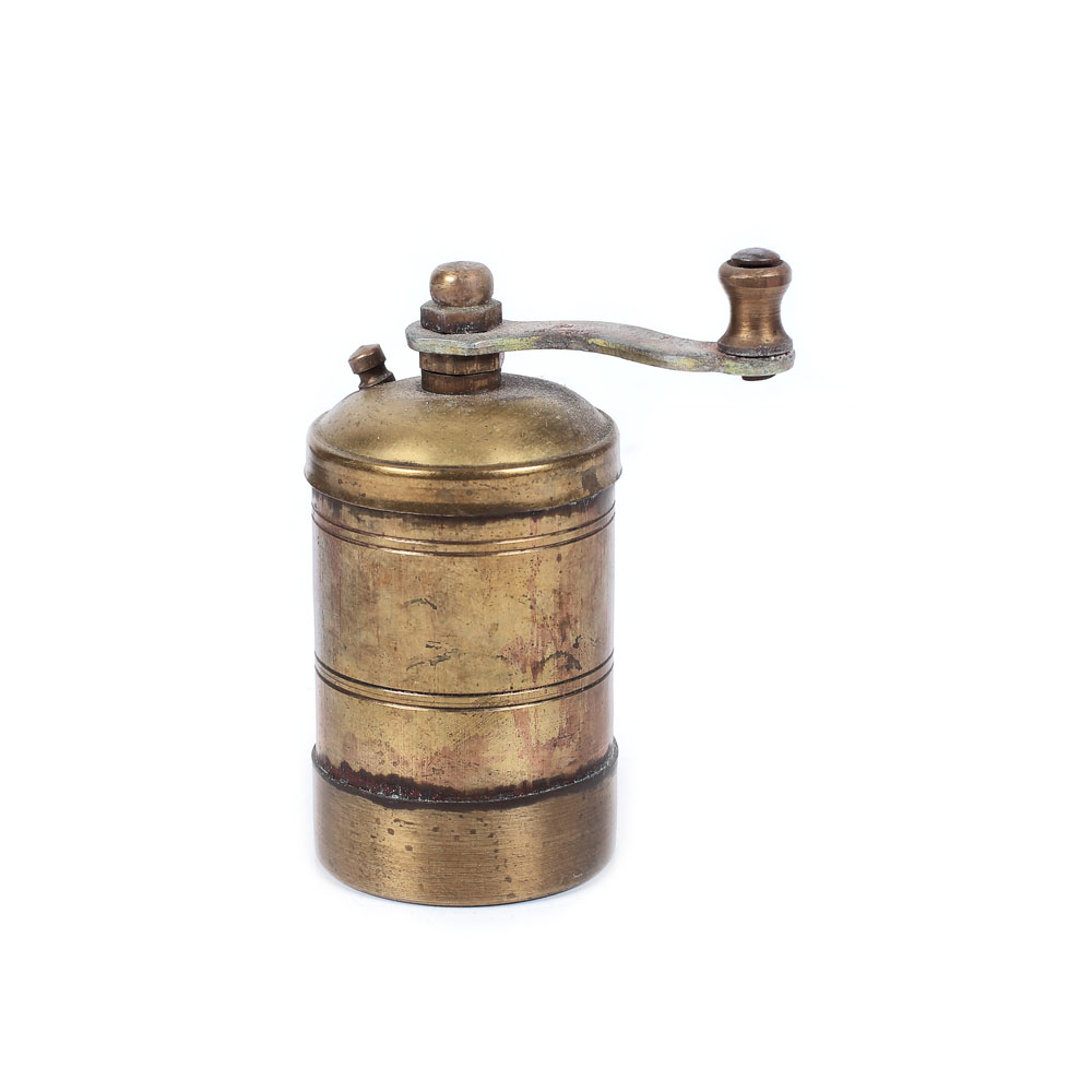 4. Set din alamă format din tavă rotundă, două ibrice și o râșniță de cafea, provine din colecţia scenografei Teodora Dinulescu