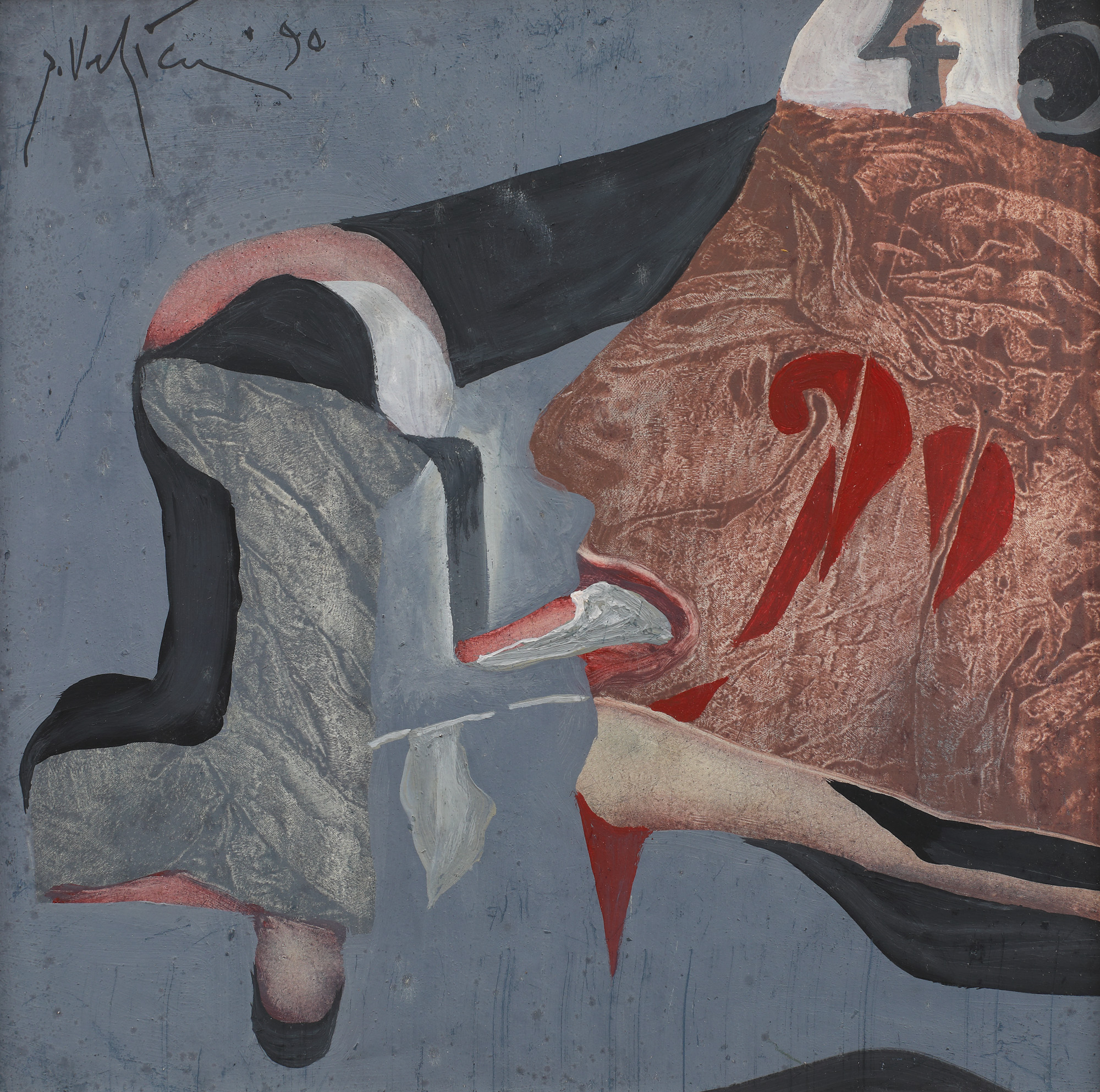 semnat și datat stânga sus, cu negru, "P. Velicu, (19)90"