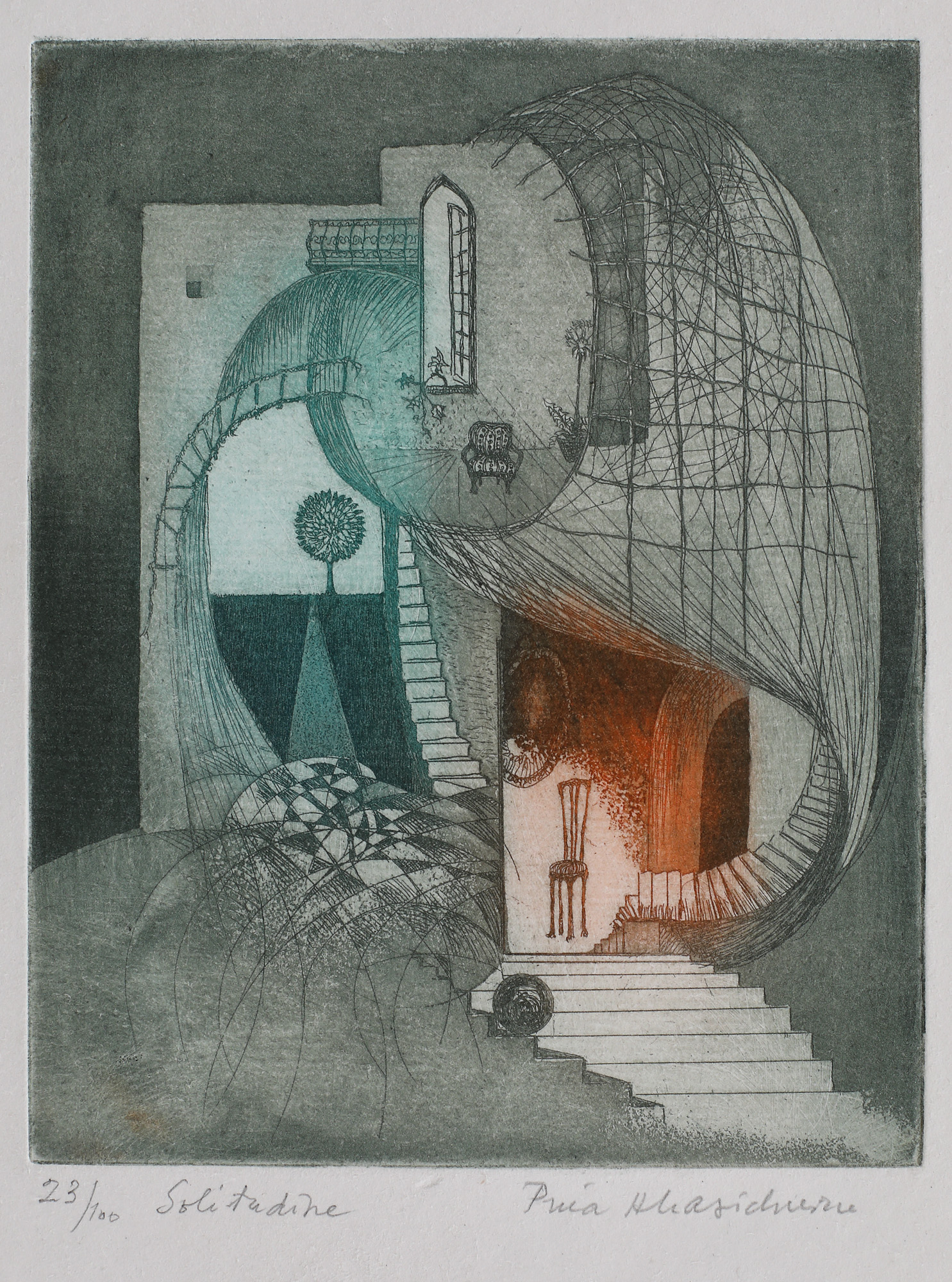 semnat dreapta jos, în creion, "Puia Maschievici"; numerotat și intitulat stânga jos, în creion, "Solitutdine, 23/100"