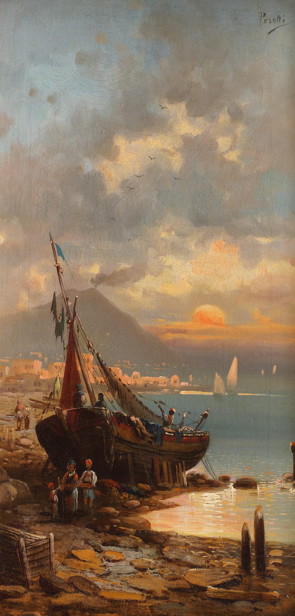 semnat dreapta sus, cu negru, în pseudonim, "Pesotti"