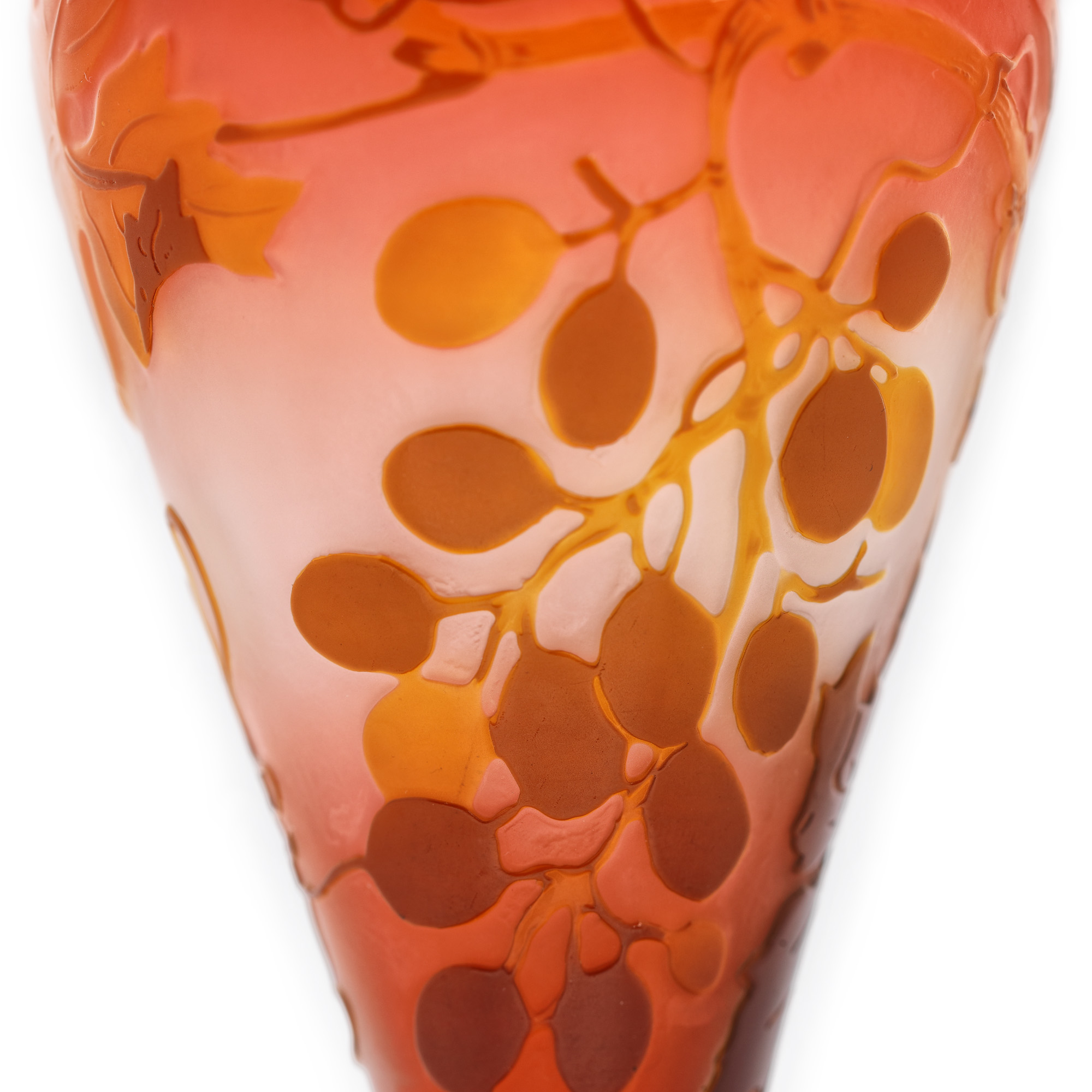 sticlă suflată, colorată în masă, stratificată, gravată cu acizi