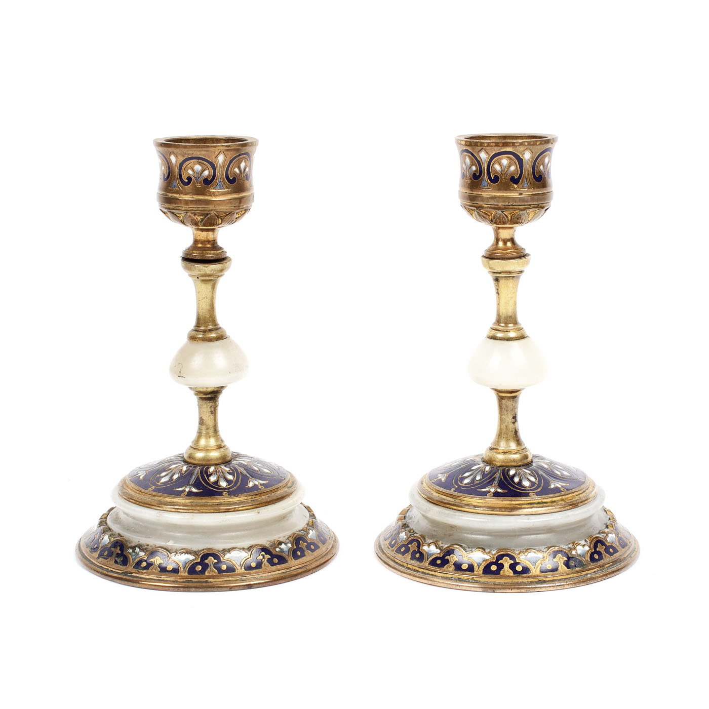 31. Garnitură de birou formată din pereche de sfeşnice şi encrieră decorată cu email, ce au aparținut pictorului Rudolf Schweitzer-Cumpăna