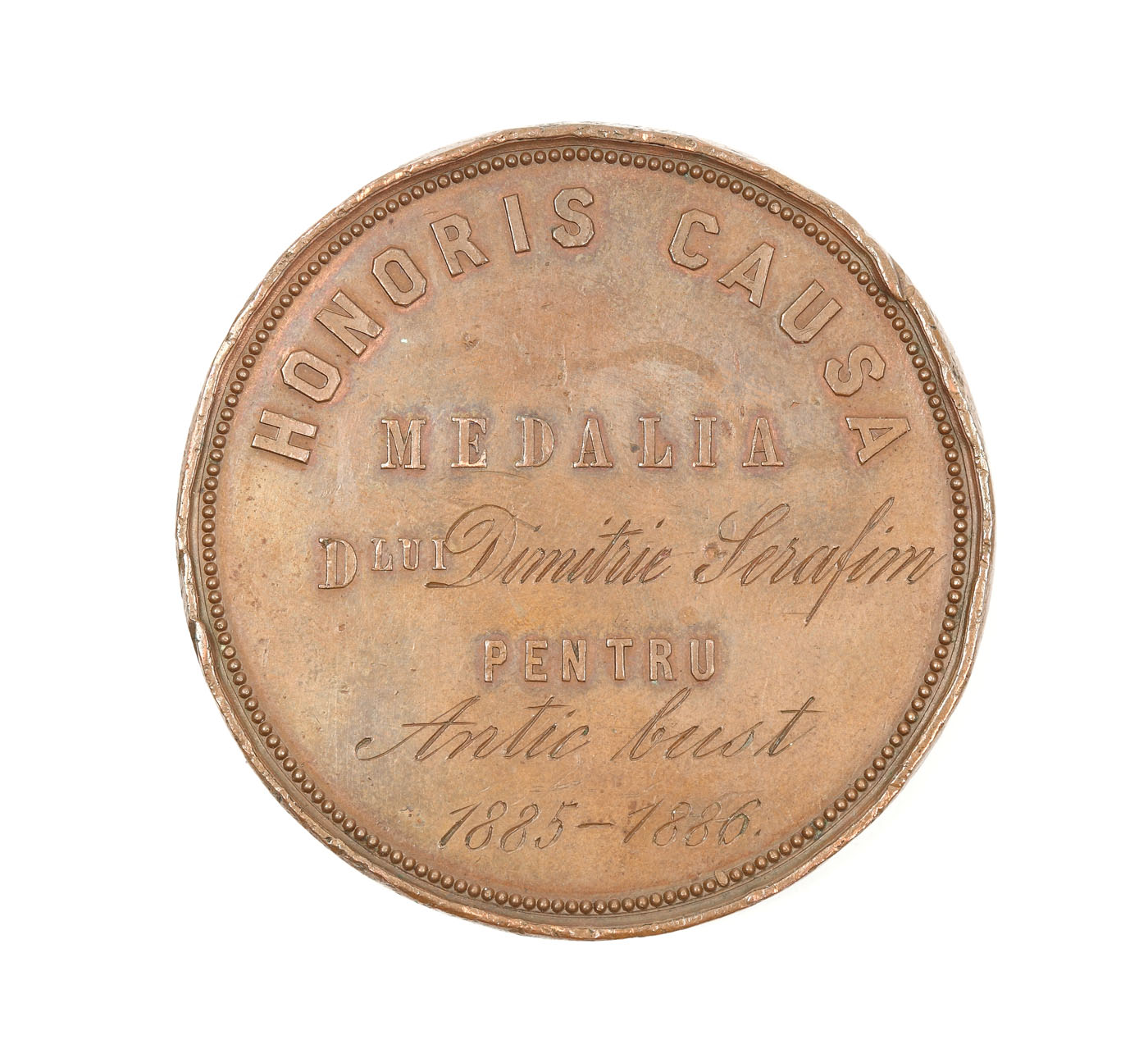 20. Medalie Honoris Causa, acordată lui Dimitrie Serafim de Școala de Arte Frumoase, 1885-1886