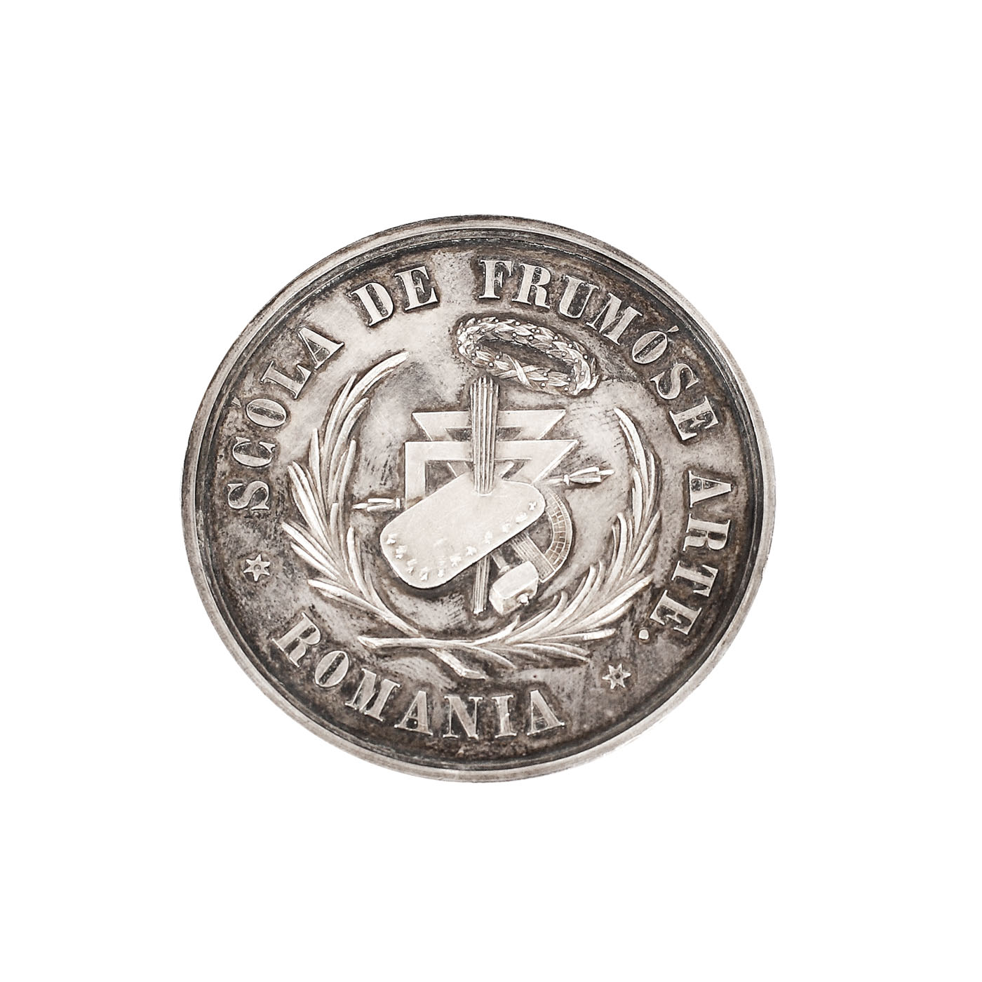 19. Medalie Honoris Causa, din argint, acordată lui Nicolae Vermont de Școala de Arte Frumoase, 1884-1885, în cutie originală