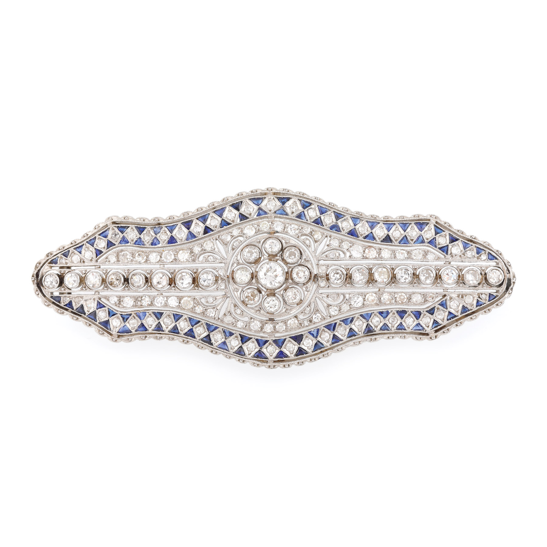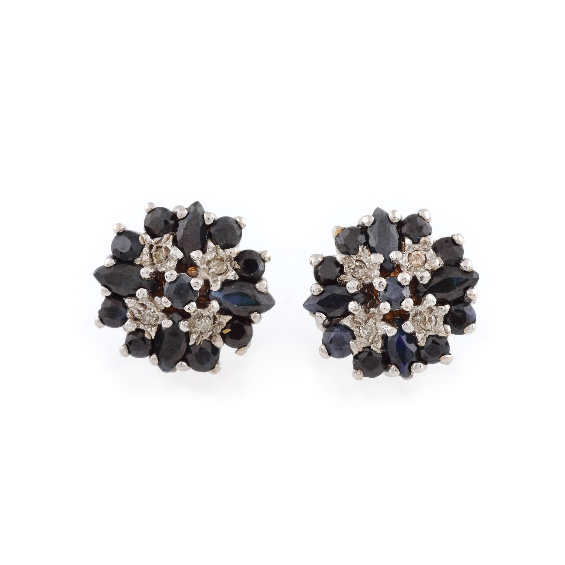 23. Pereche de cercei din aur alb, decorată cu safire și diamante