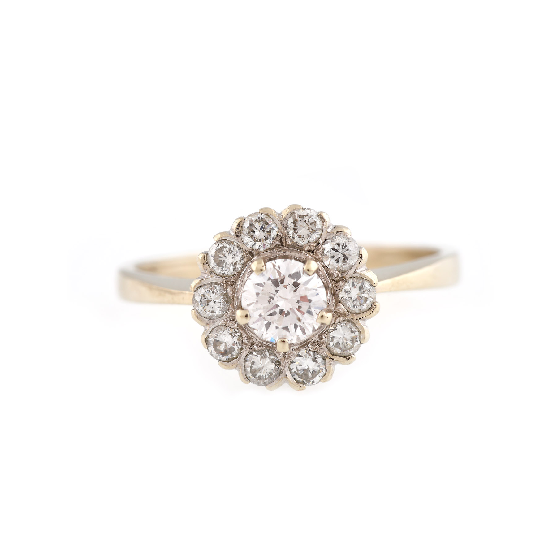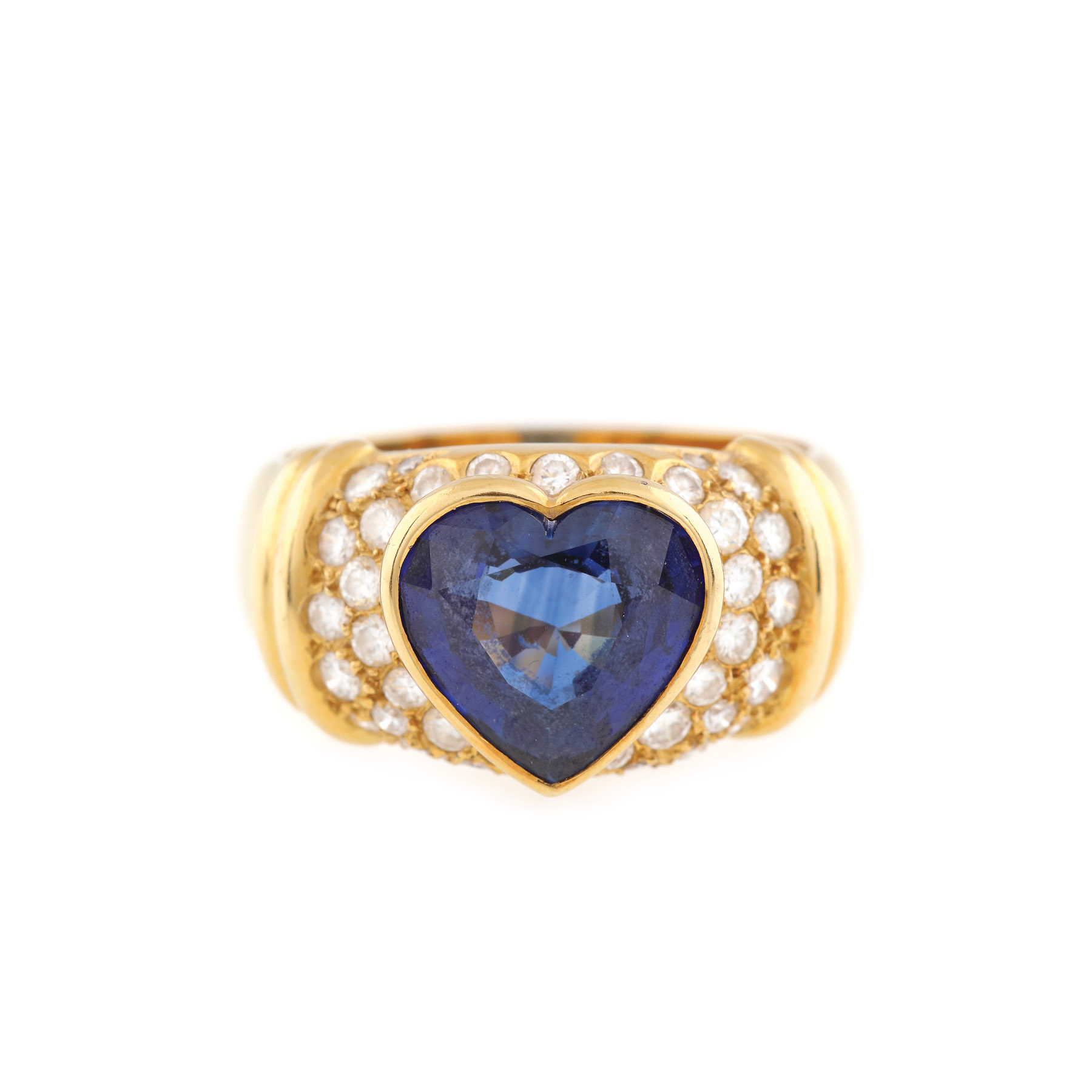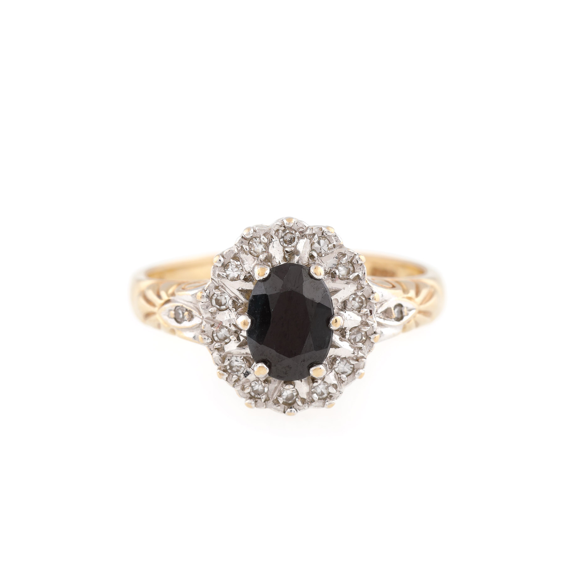 24. Inel din aur, decorat cu diamante și un safir central