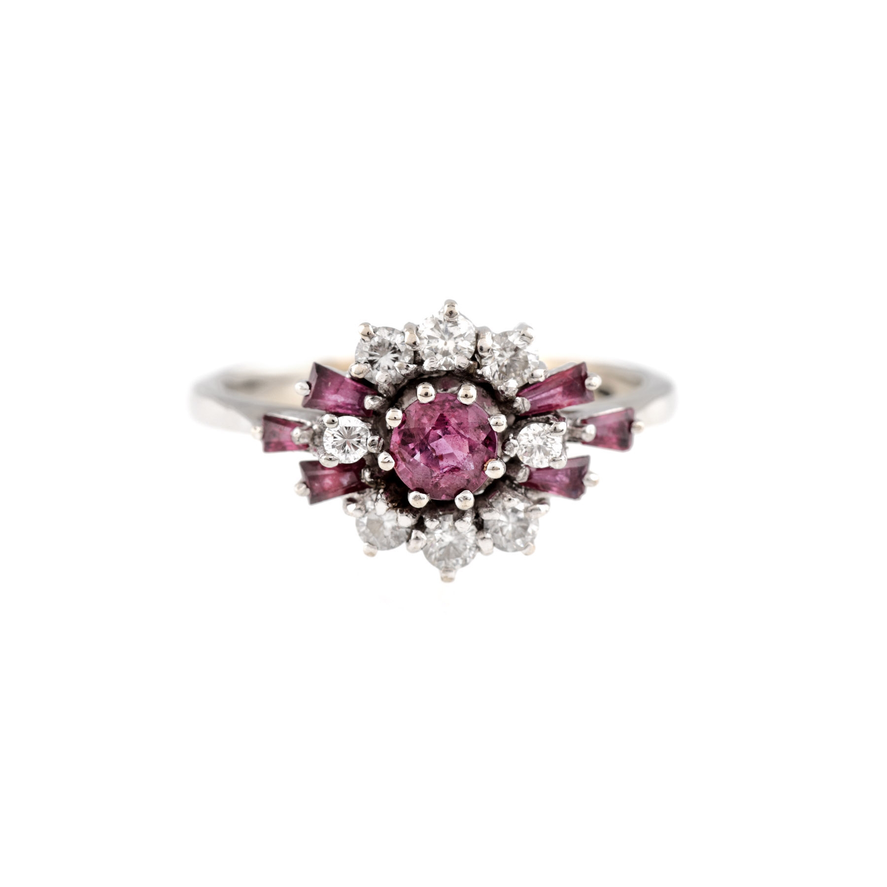11. Inel din aur alb, decorat cu rubine și diamante