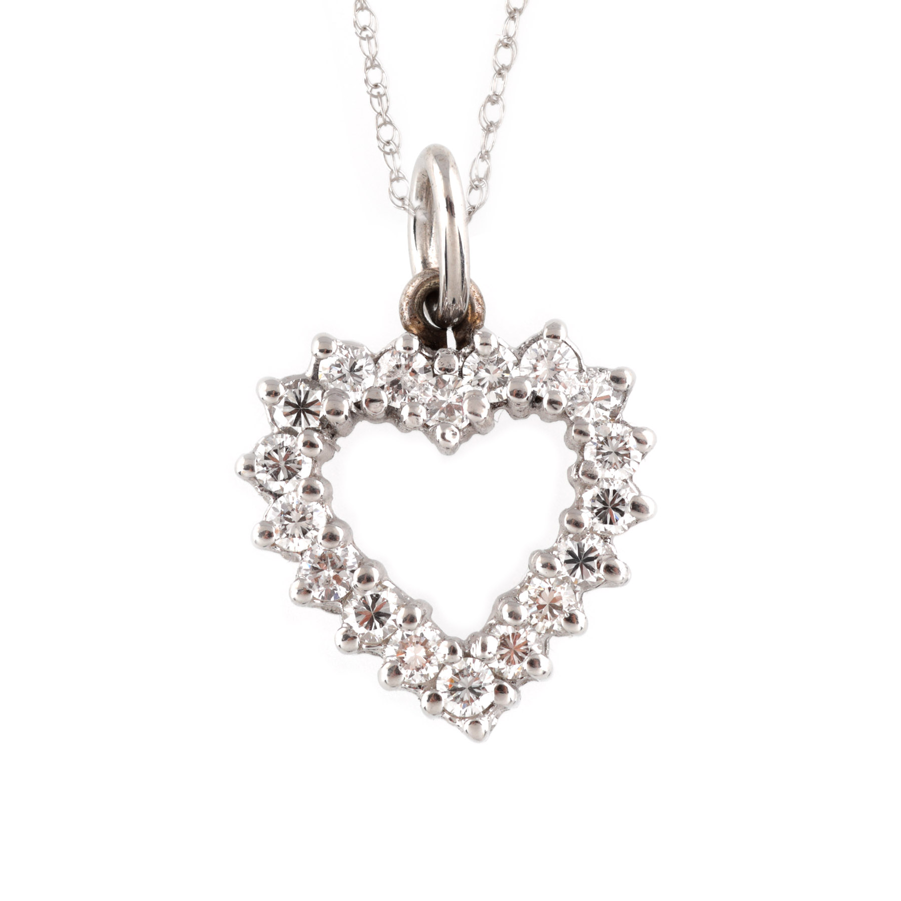 6. Lanț cu pandantiv-inimă din aur alb, decorat cu diamante