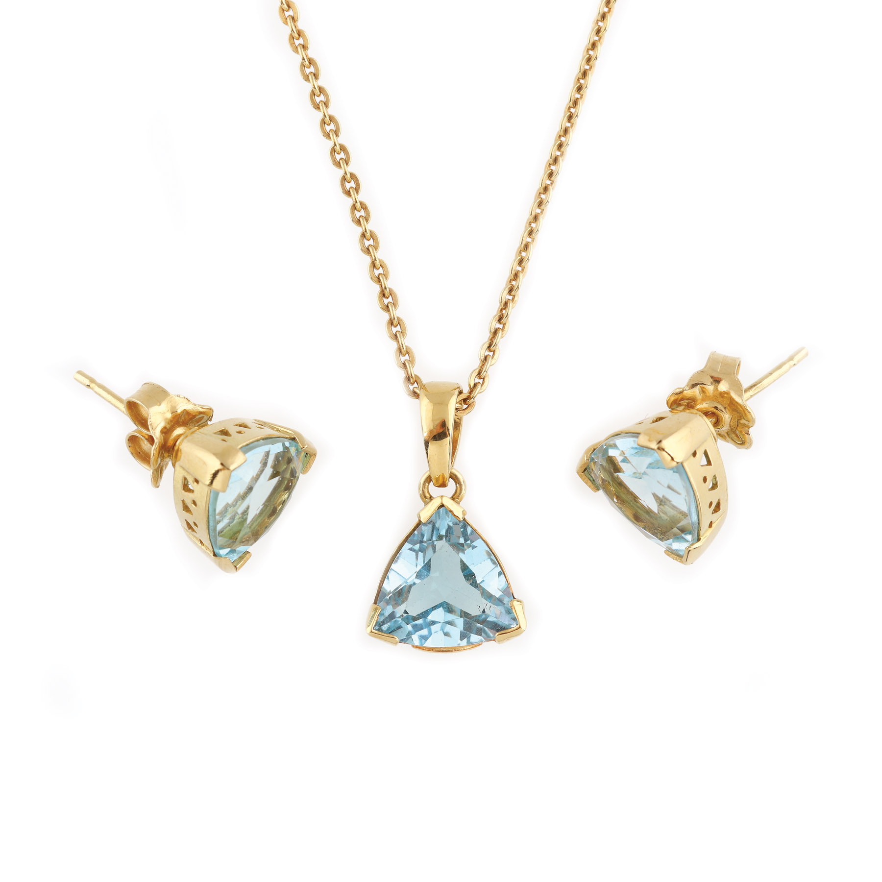 34. Set din aur, compus din lanț, pandant și pereche de cercei, decorat cu topaze