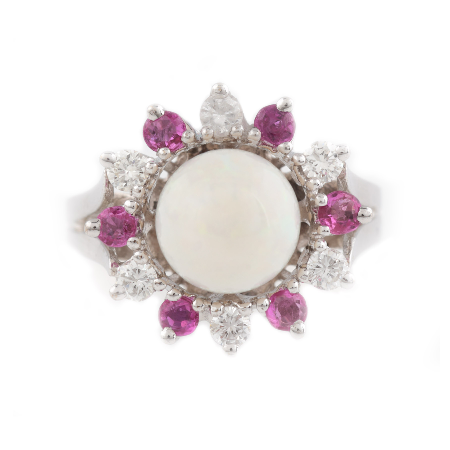 16. Inel din aur alb, decorat cu opal, diamante și safire roz [1950]