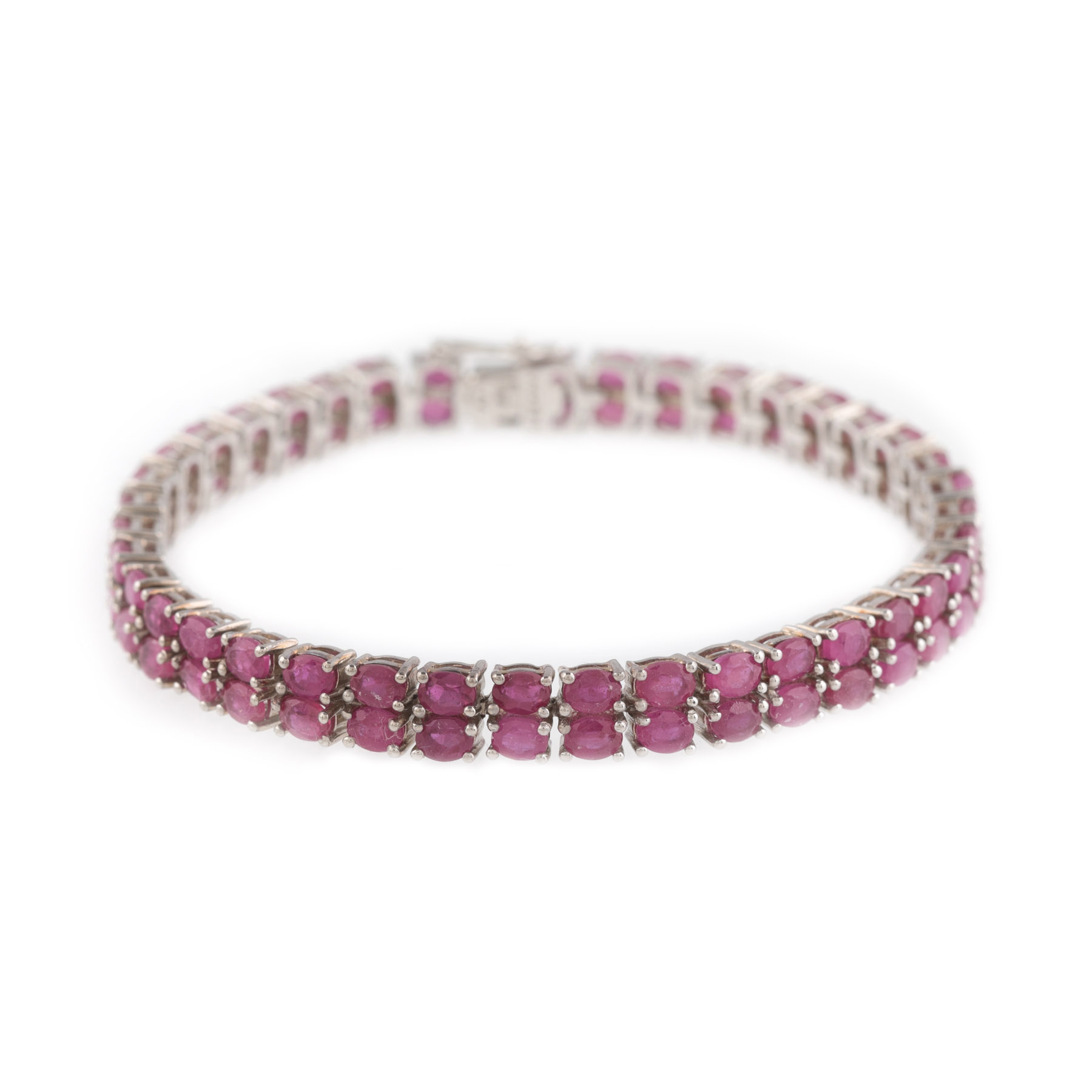 12. Brățară tennis din argint aurit cu aur alb, decorată cu două rânduri de rubine