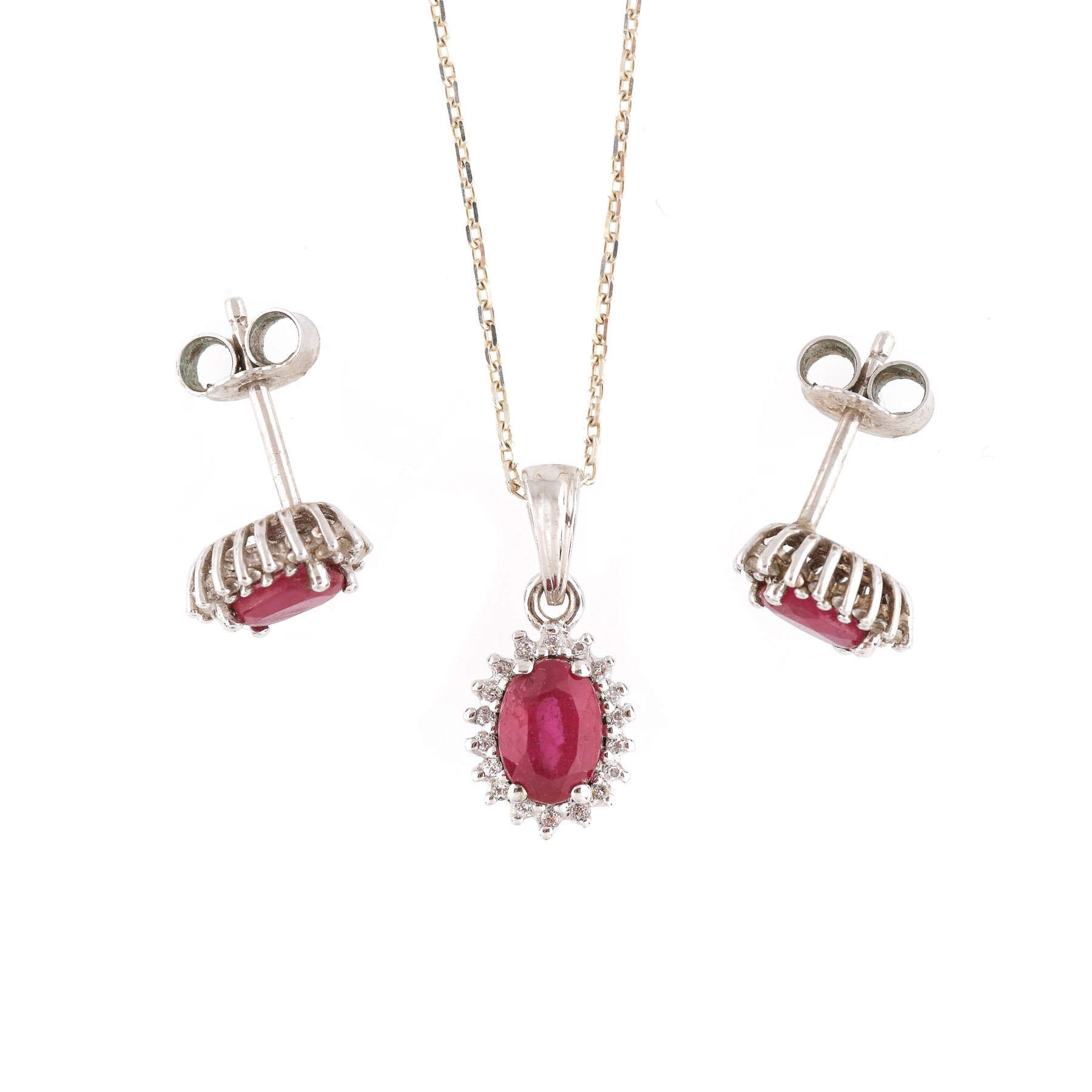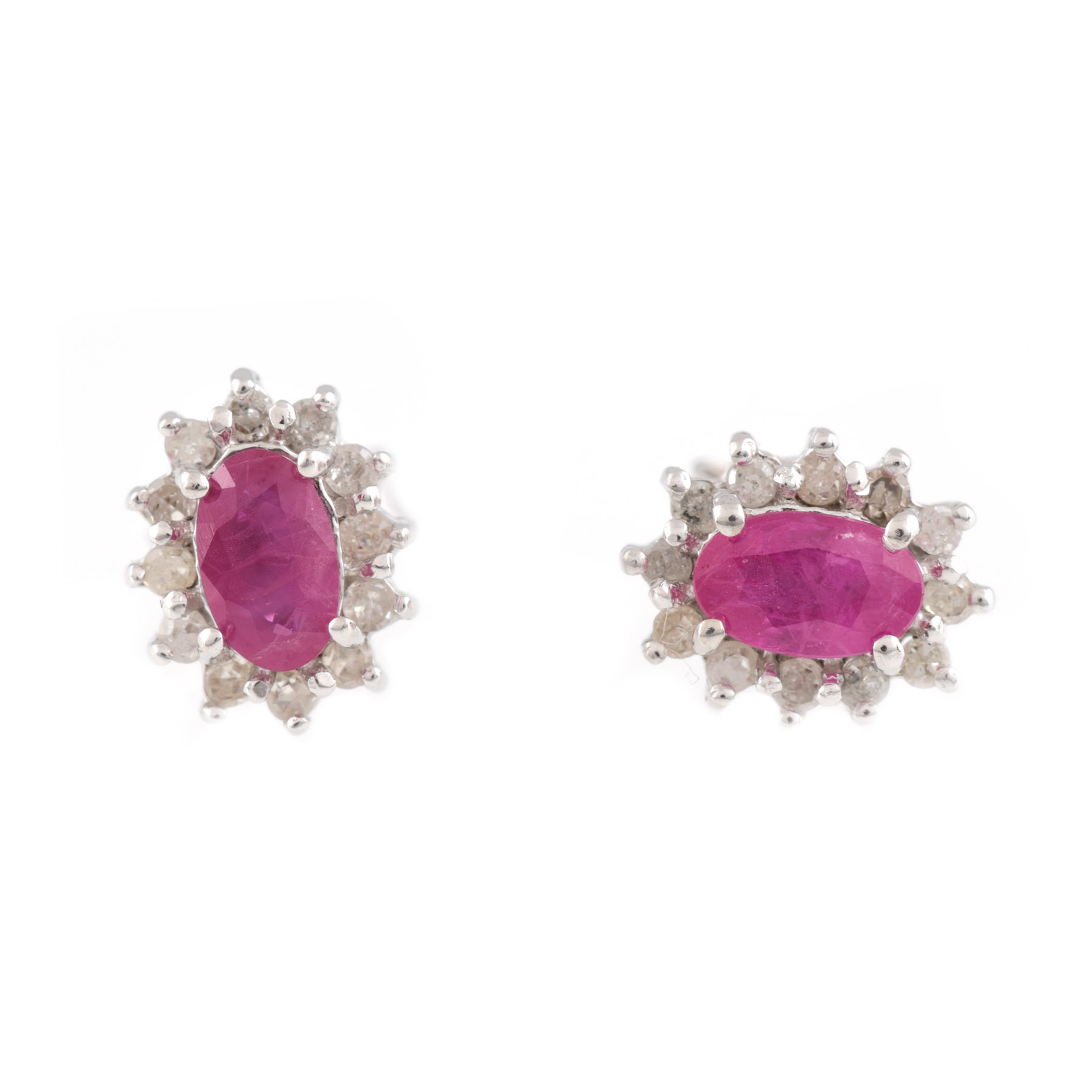 18. Pereche de cercei din aur alb, decorată cu rubine anturate de diamante