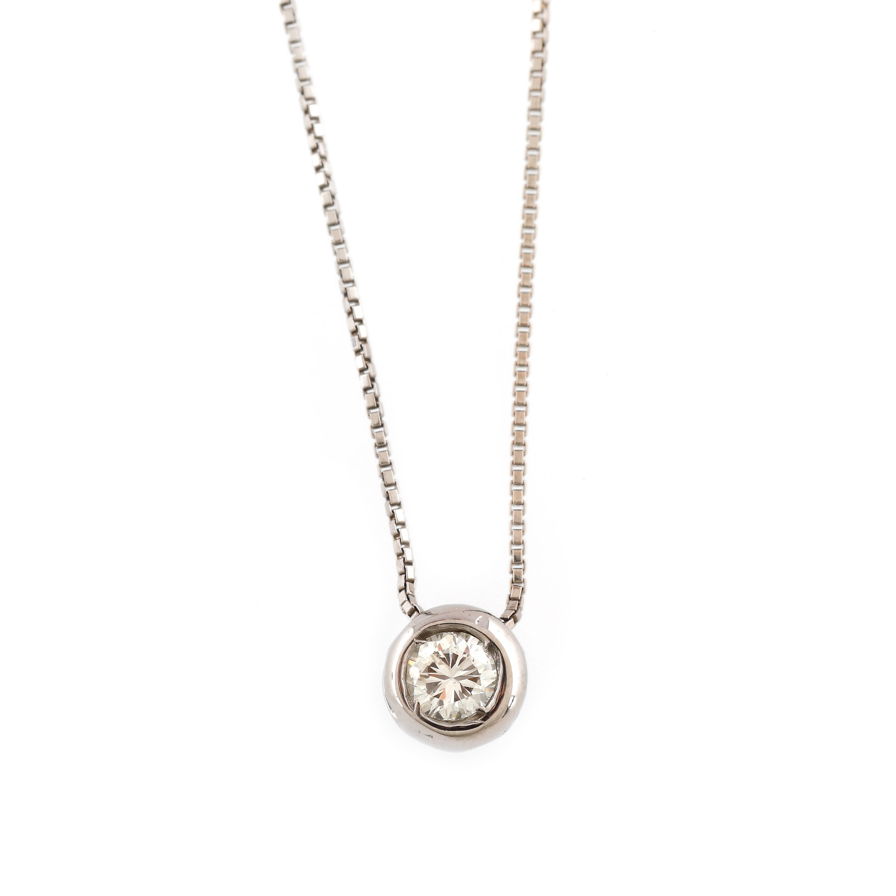 2. Lanț cu pandantiv din aur alb, ornat cu diamante