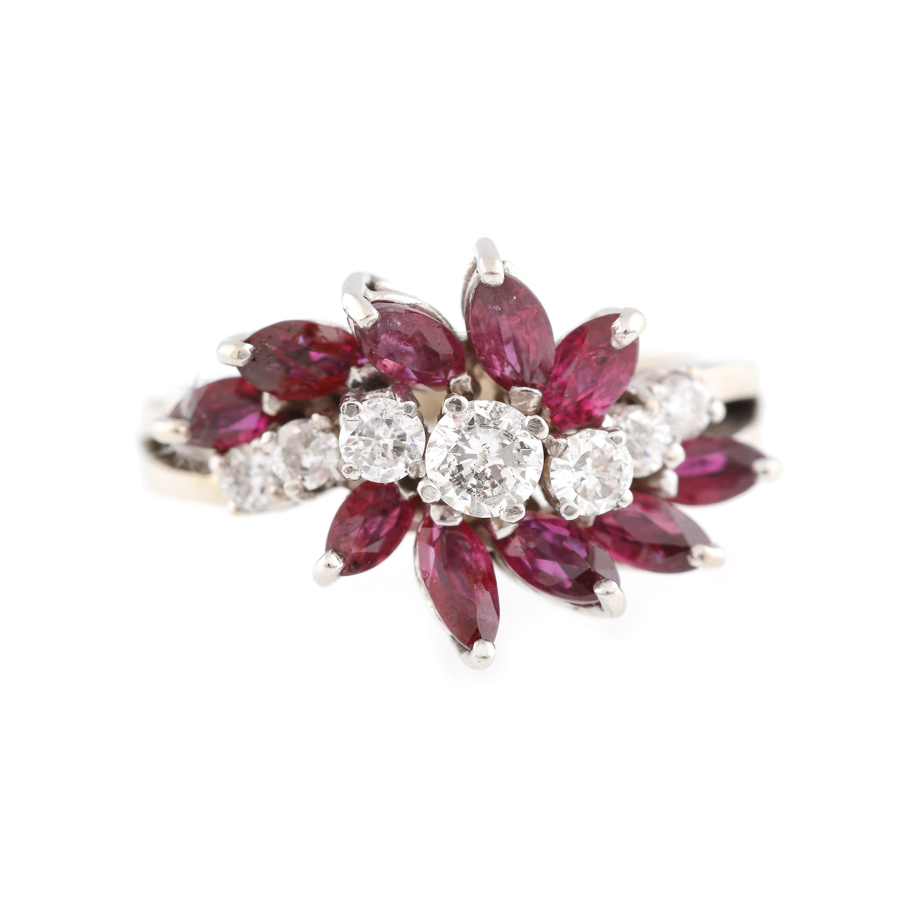 17. Inel din aur alb, decorat cu rubine marchiză și diamante