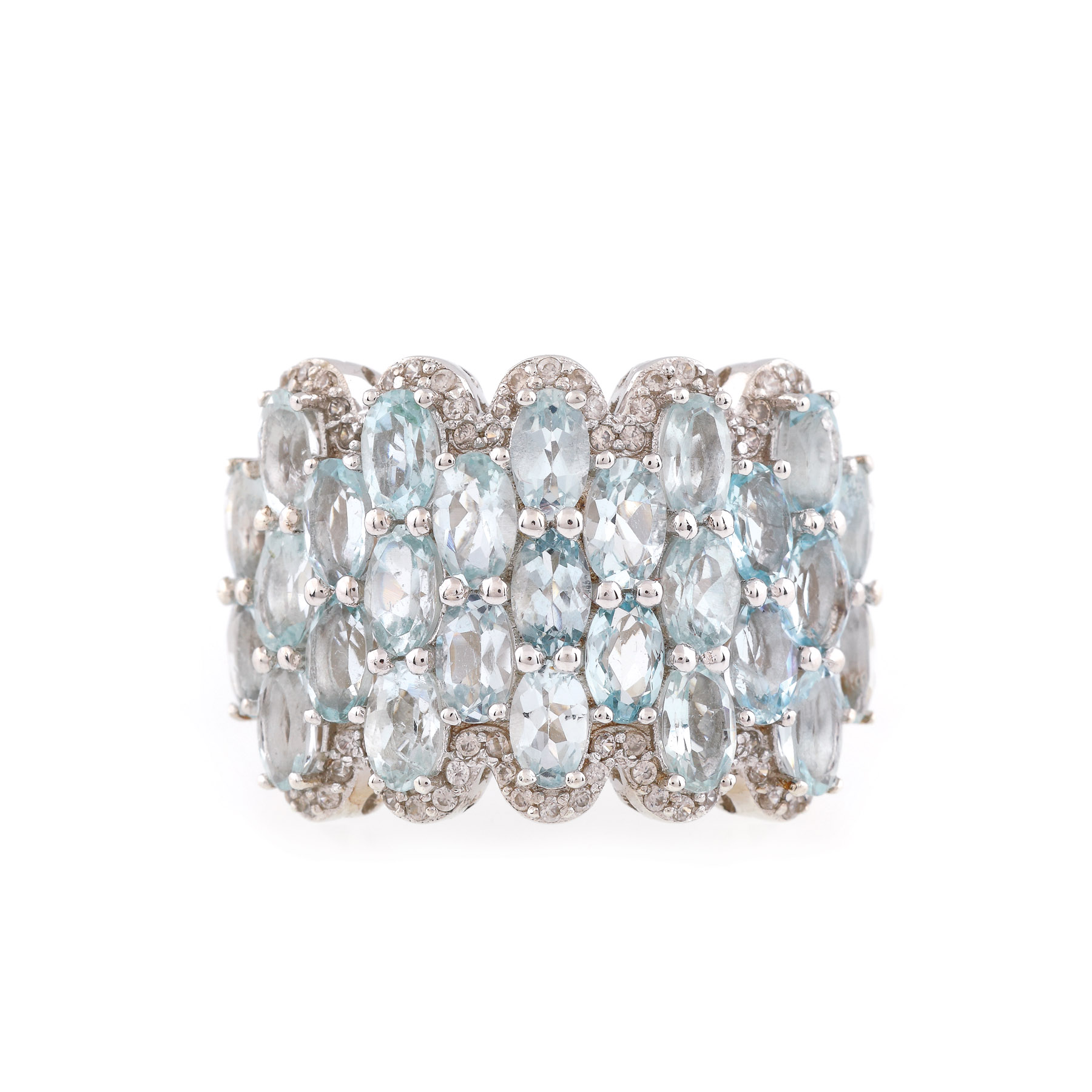 32. Inel din argint aurit, decorat cu acvamarine și safire albe