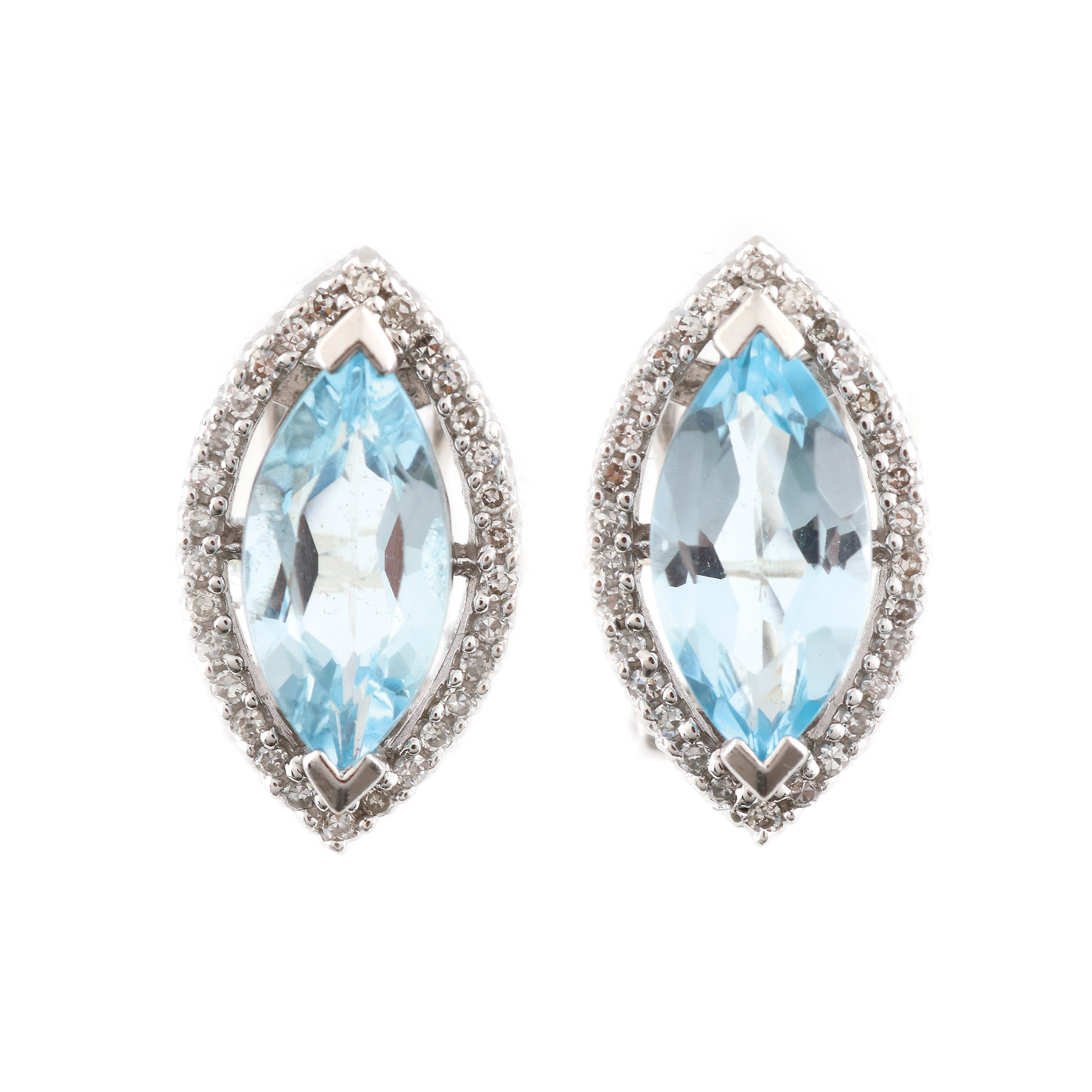 35. Pereche de cercei din aur alb, decorată cu topaze și diamante