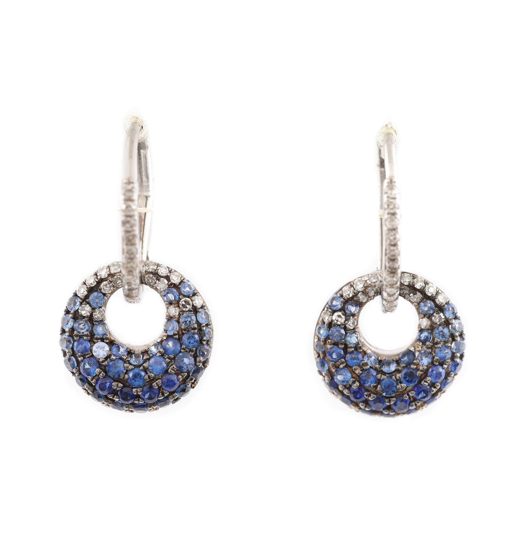 25. Pereche de cercei din aur alb, decorată în degrade cu safire și diamante